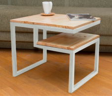 Каркас: профильная труба 20х20 мм.Прочное полимерно-порошковое покрытие черного, белого и серого цвета Дерево: массив сосны 20 мм, покрытое специальным маслом для мебели, цвета на выбор: бесцветный, белый, серый, махагон, орех, морёный дуб, черный, клён, черный графит, голубой графит, темное золото графит, золото графит.