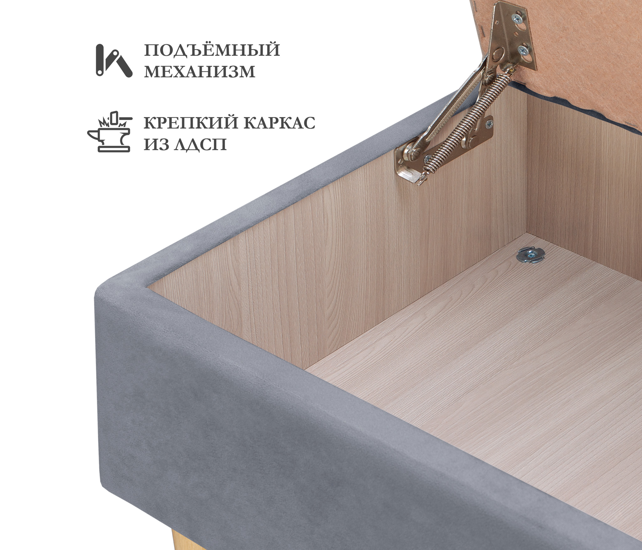 Пуф банкетка Париж 42 с ящиком, микровелюр (Светло-серый) Код I0000207800