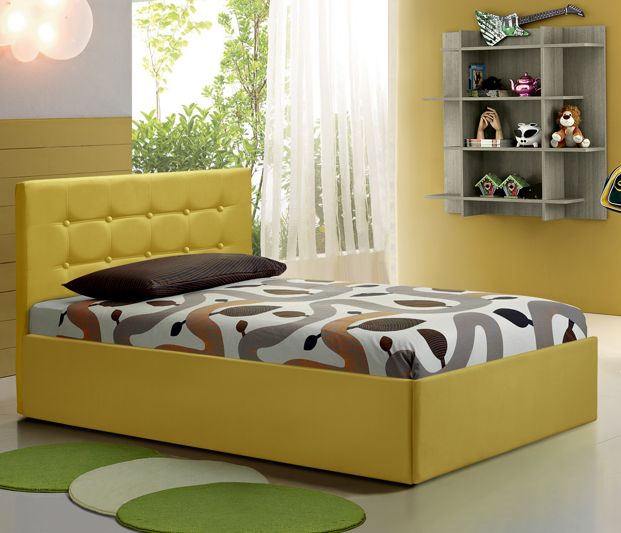 Спальное место оснащено газлифтами для быстрого доступа к большому ящику для хранения.