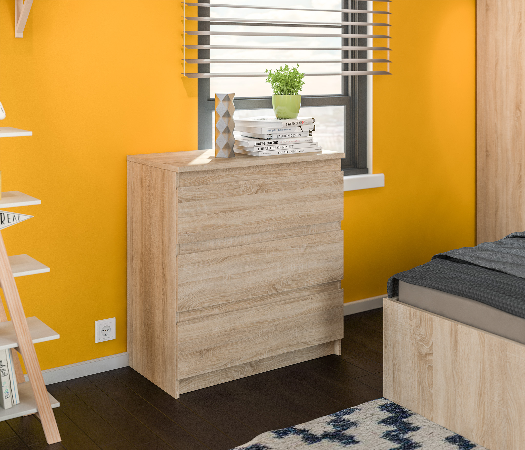 Комод Кито выполнен из современного прочного материала. Благодаря белому цвету и матовому покрытию фасадов выдвижных ящиков, комод Кито смотрится стильно и не громоздко.