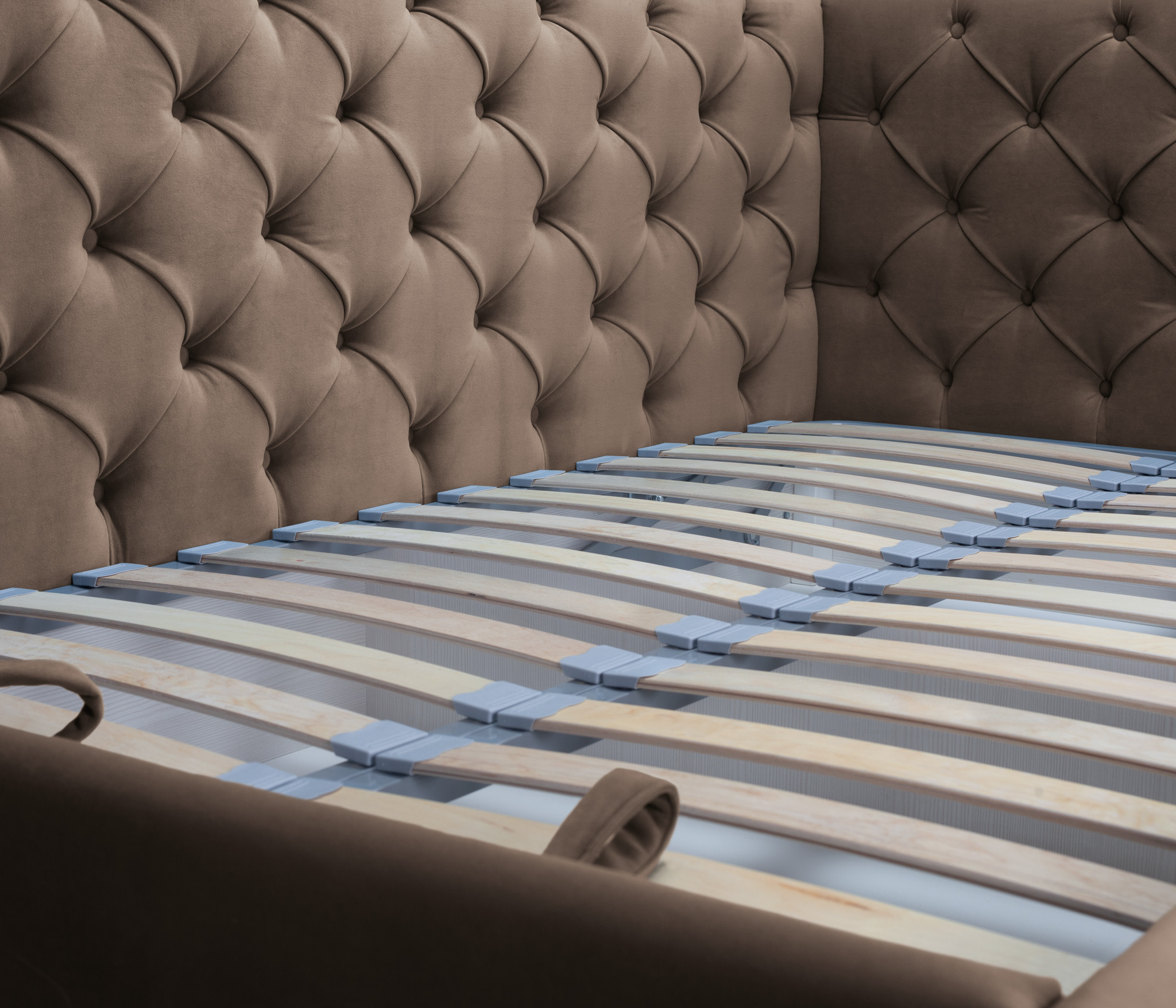 - Обивка кровати выполнена в микровелюре с отличными техническими характеристиками, легко чистится и сохраняет свои свойства;