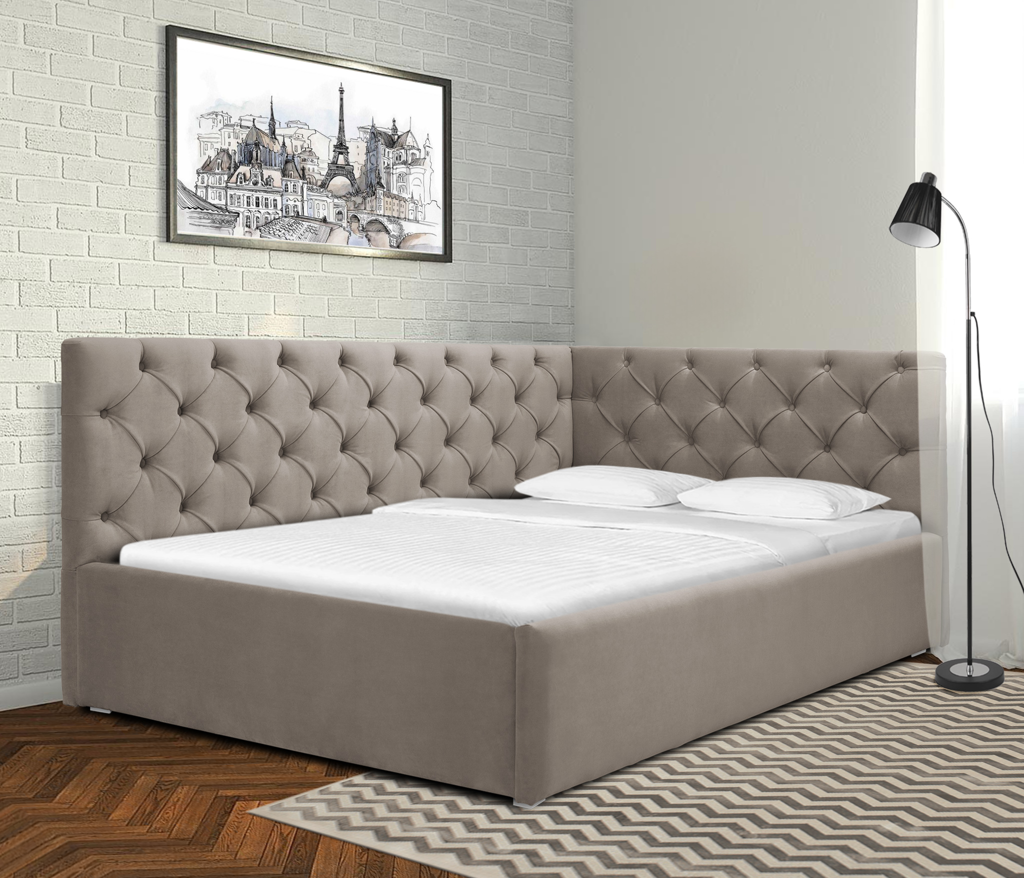Отзывы о Столплит Кровать с мягким изголовьем угловая Оливия 1200 с подъемным механизмом, микровелюр Беж