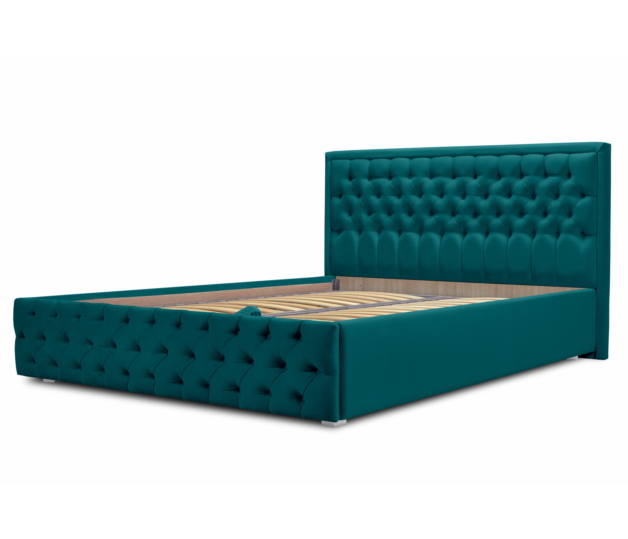 Обивка кровати выполнена в качественном велюре, с отличными техническими характеристиками.