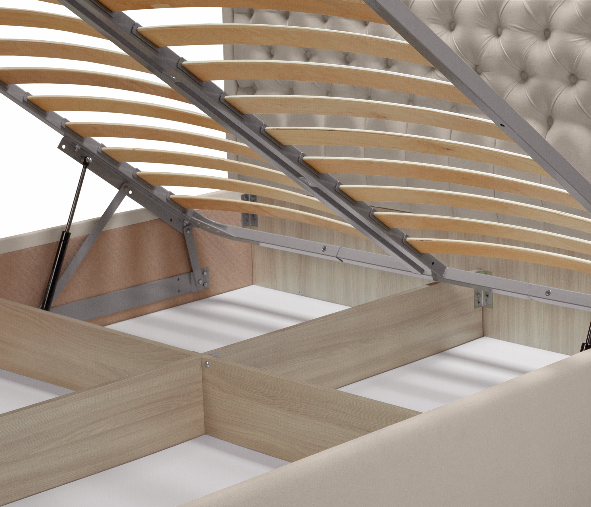 Подъемный механизм позволяет вам без труда поднять спальное место и получить доступ к большому ящику для хранения.