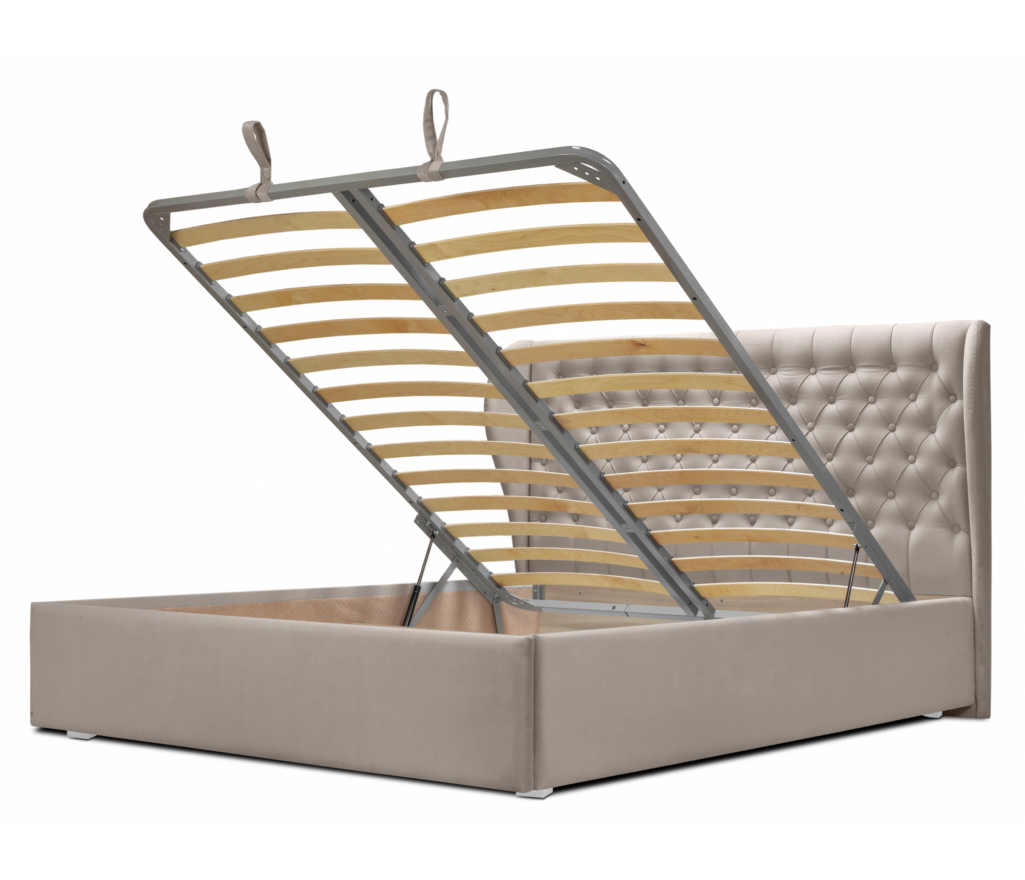 Подъемный механизм позволяет вам без труда поднять спальное место и получить доступ к большому ящику для хранения.