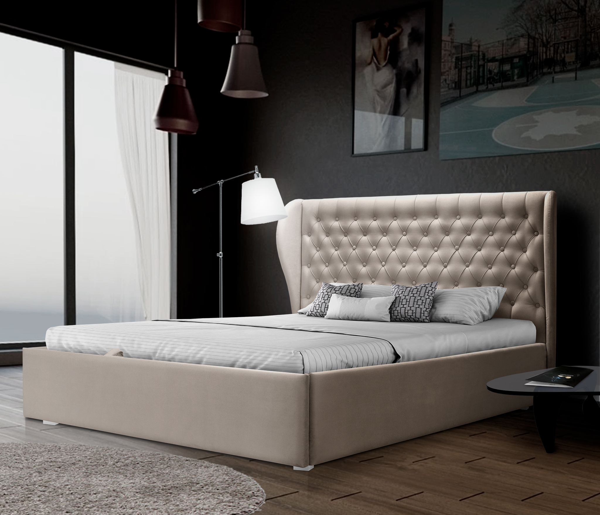Кровать Мишель 1400 с подъемным механизмом, микровелюр (Кремовый) Код I0000234847