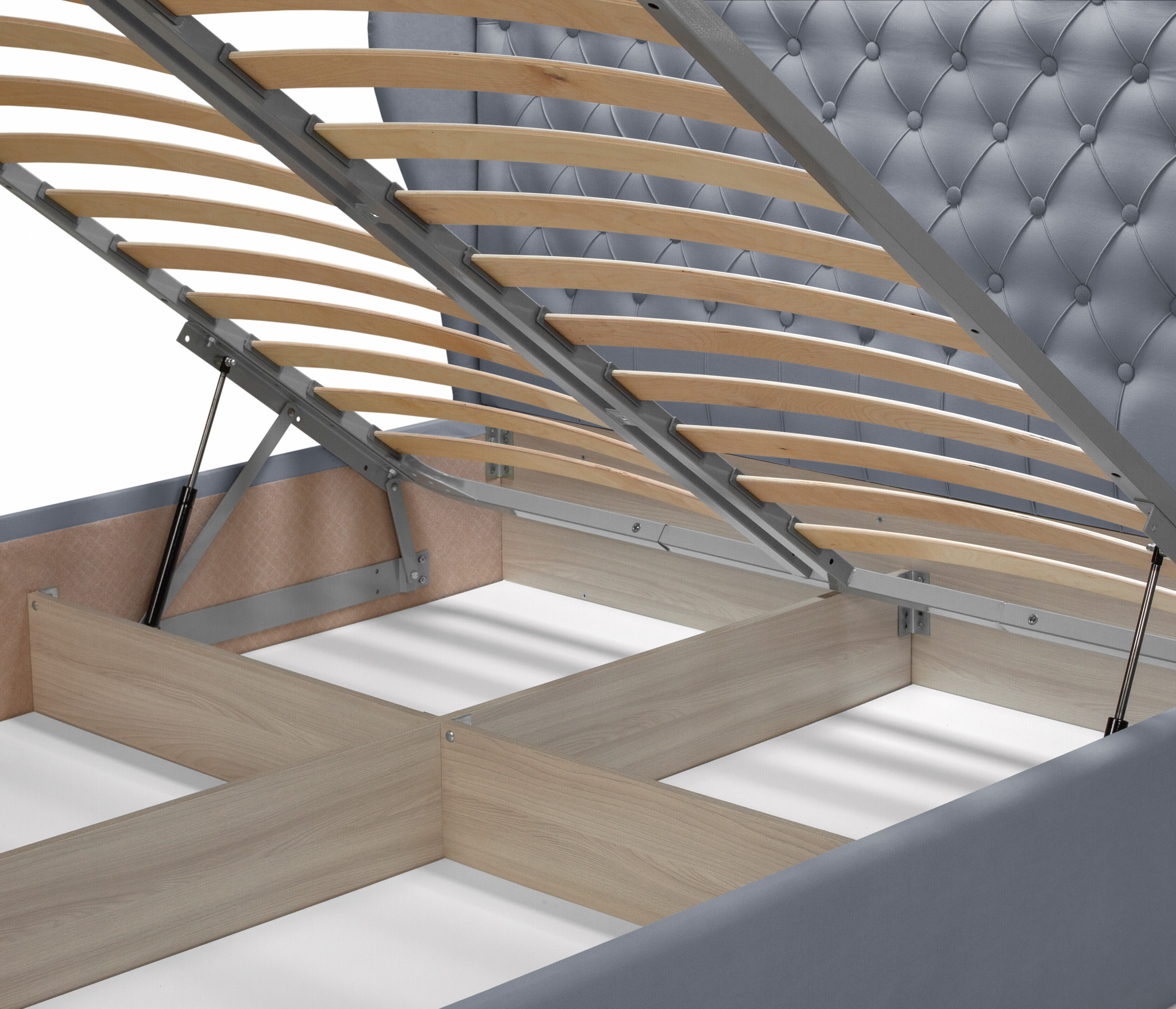 Подъемный механизм позволяет вам без труда поднять спальное место и получить доступ к большому ящику для хранения.
