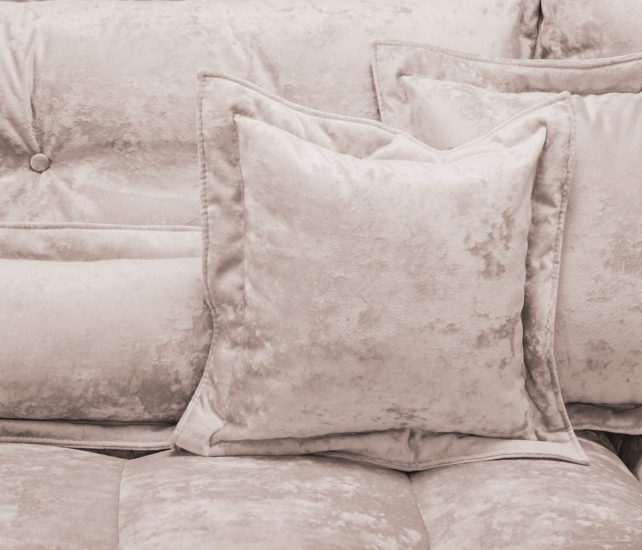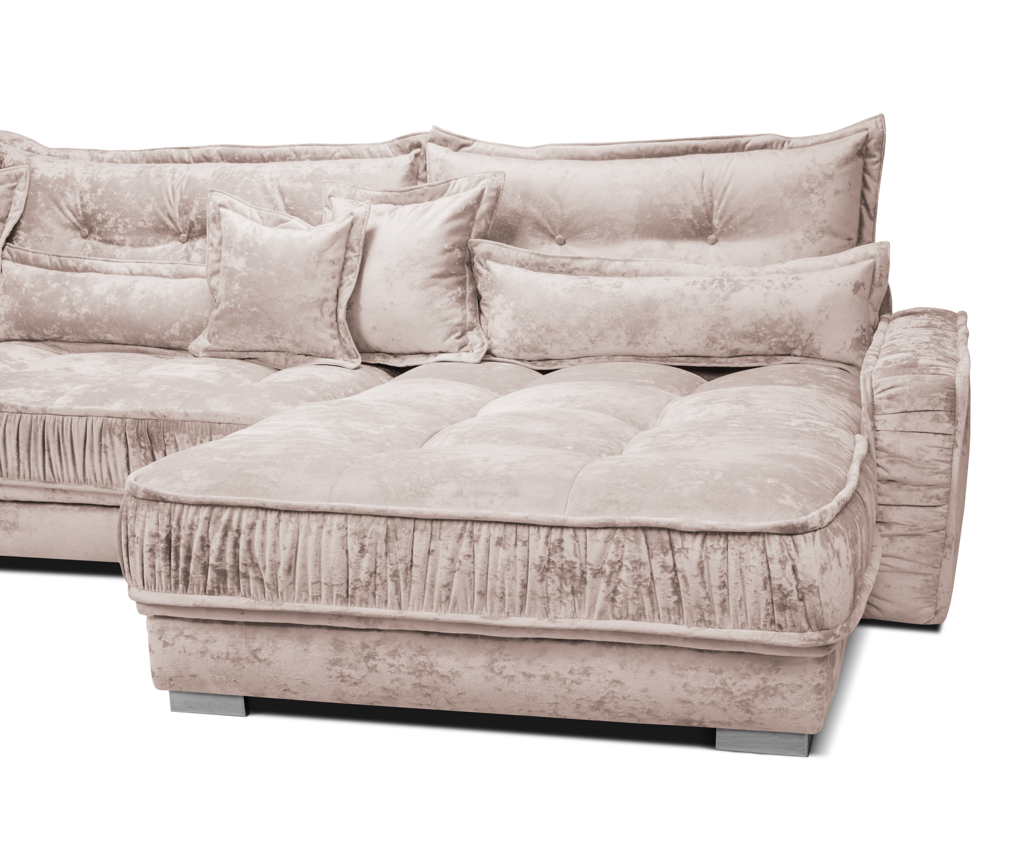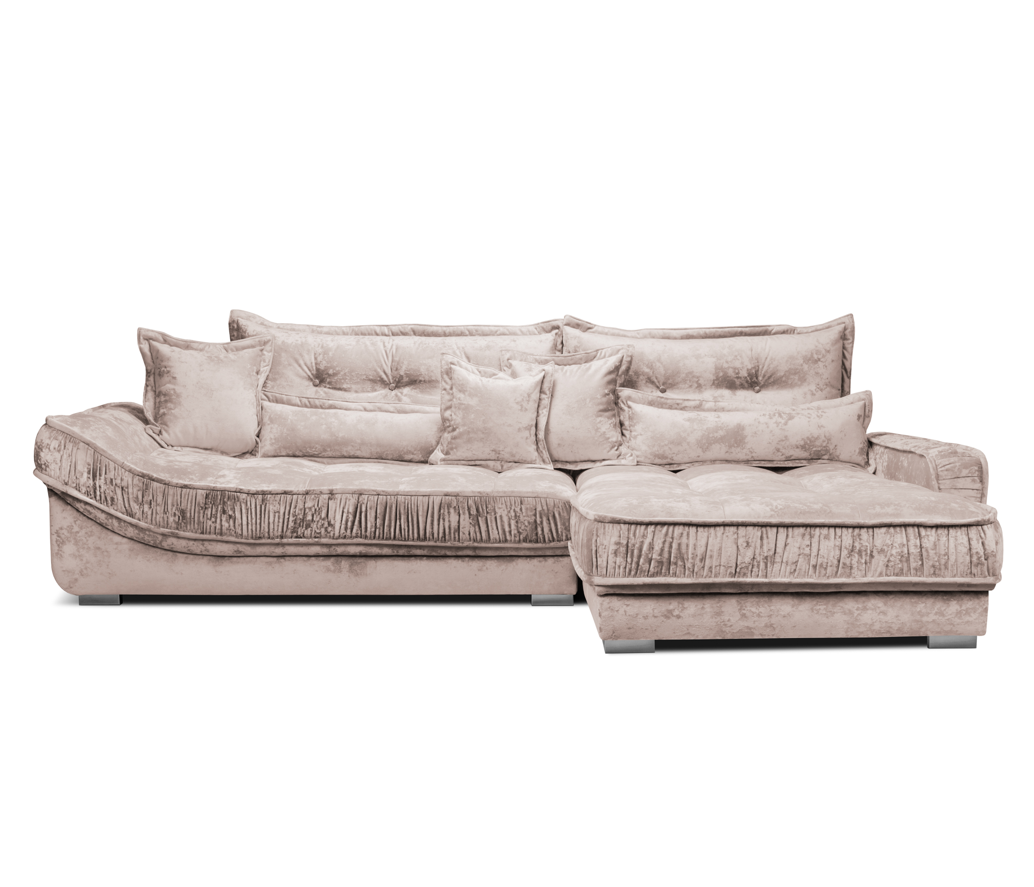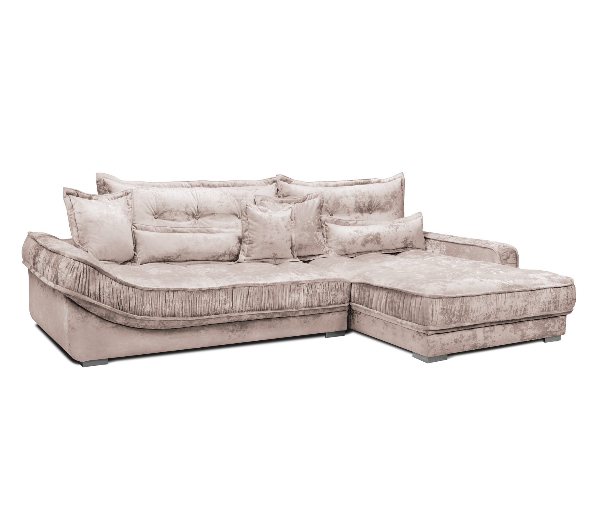 ОБИВКА Мягкий угол Бруно выполнен в ткани нежных оттенков с эффектом плюша, с отличными техническими характеристиками. Ткань проста в уходе.