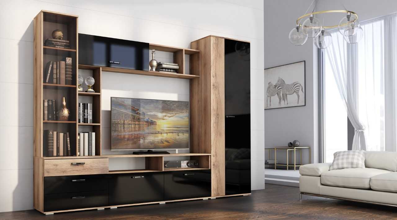 Отзывы о Столплит Гостиная Крокус ЛДСП Черный Глянец
