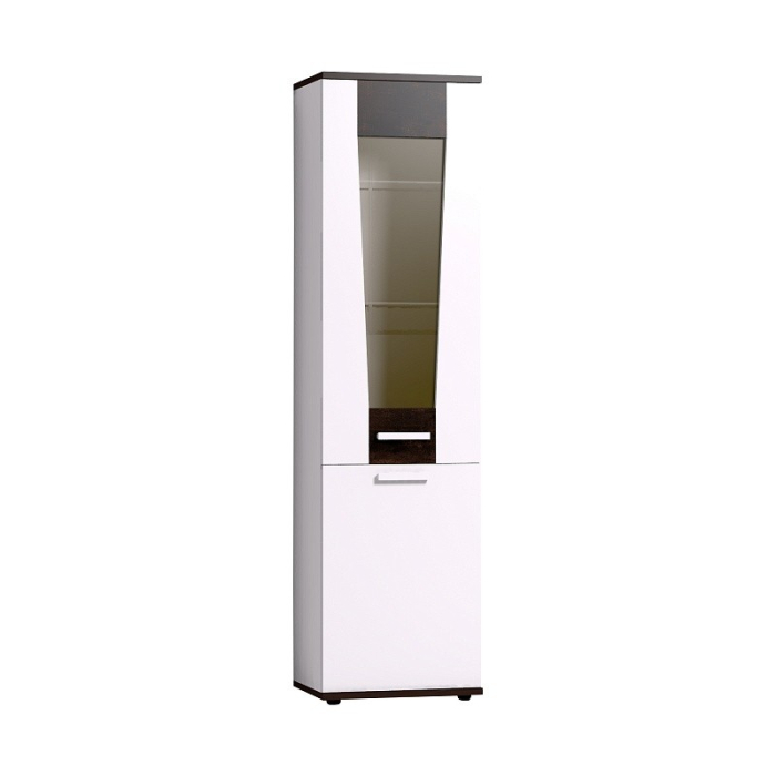 Норвуд 13 Шкаф для посуды и Норвуд 22 Шкаф-сервант – необычные витрины с тонированными стеклами и фигурными фасадами. Они дополнены деревянными брашированными вставками и белыми ручками из массива.