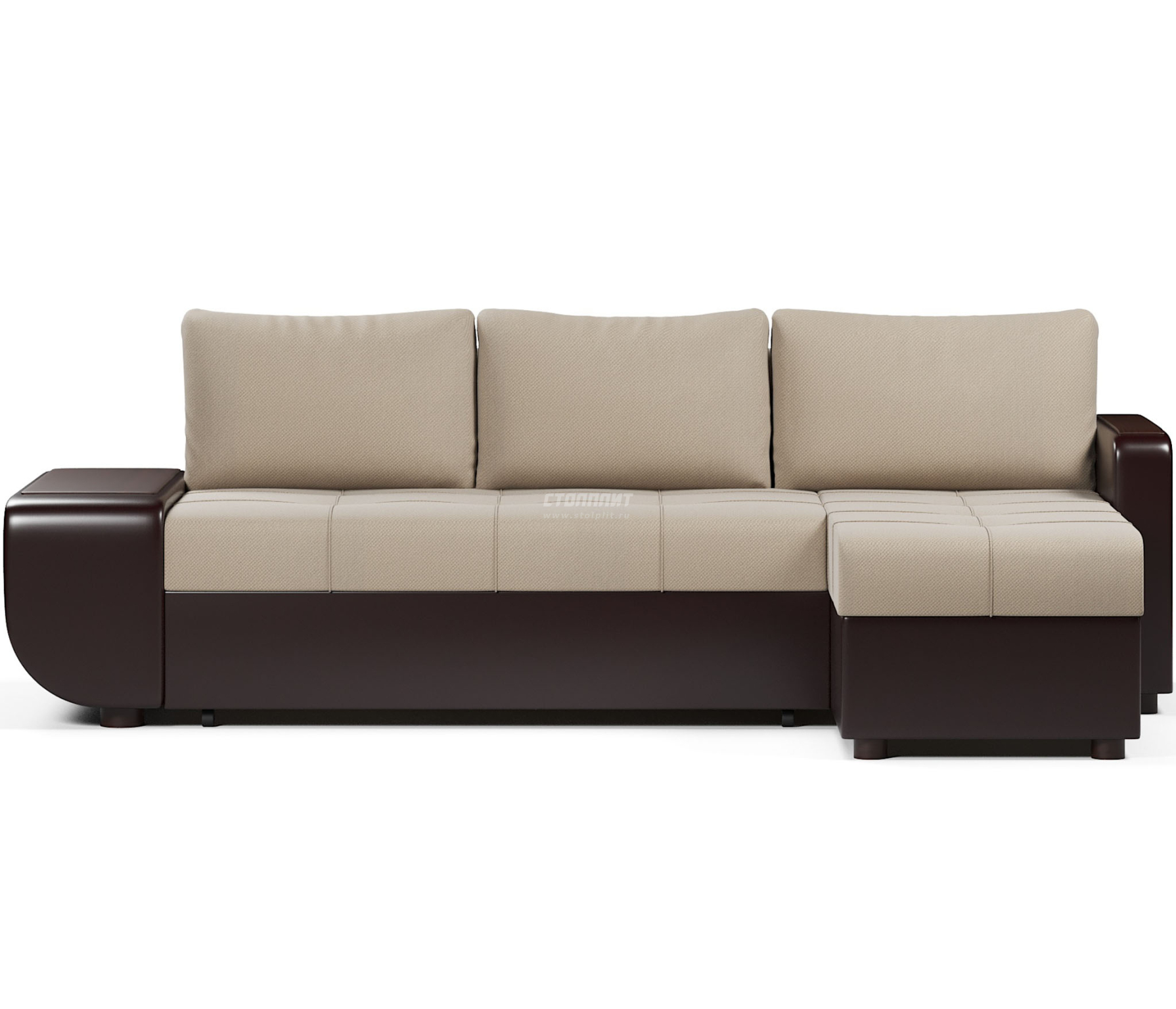 Отзывы о Столплит Диван-кровать угловой Атланта со столиком еврокнижка,велюр+экокожа бежево-розовый