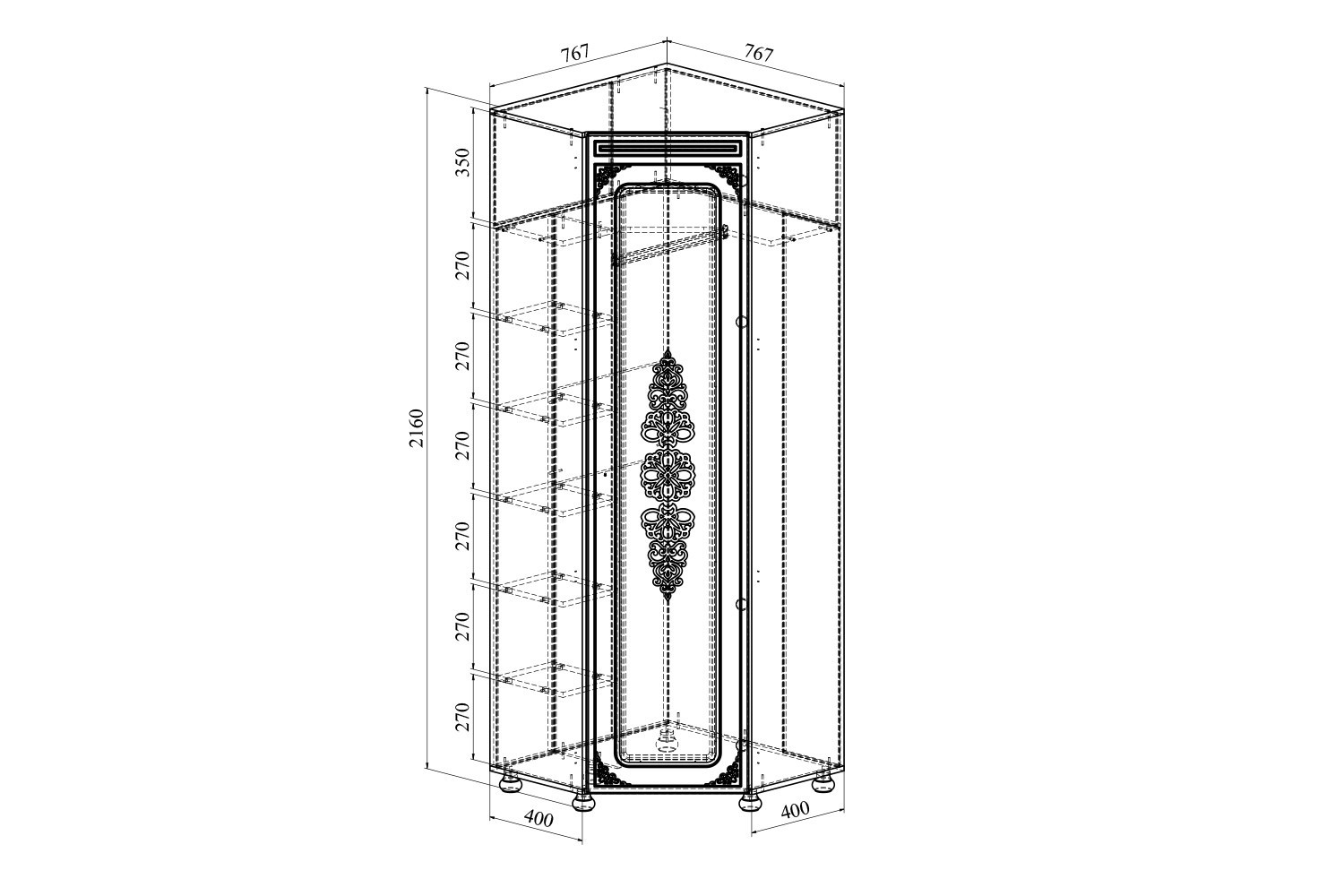 Материал корпуса/фасада: ЛДСП/МДФ с 3-D узором. Цвет корпуса/фасада: ваниль/ваниль. Размеры модуля (ш/г/в) в мм: 767х767х2160. Фурнитура: петли с доводчиками. Высота опоры 65 мм.