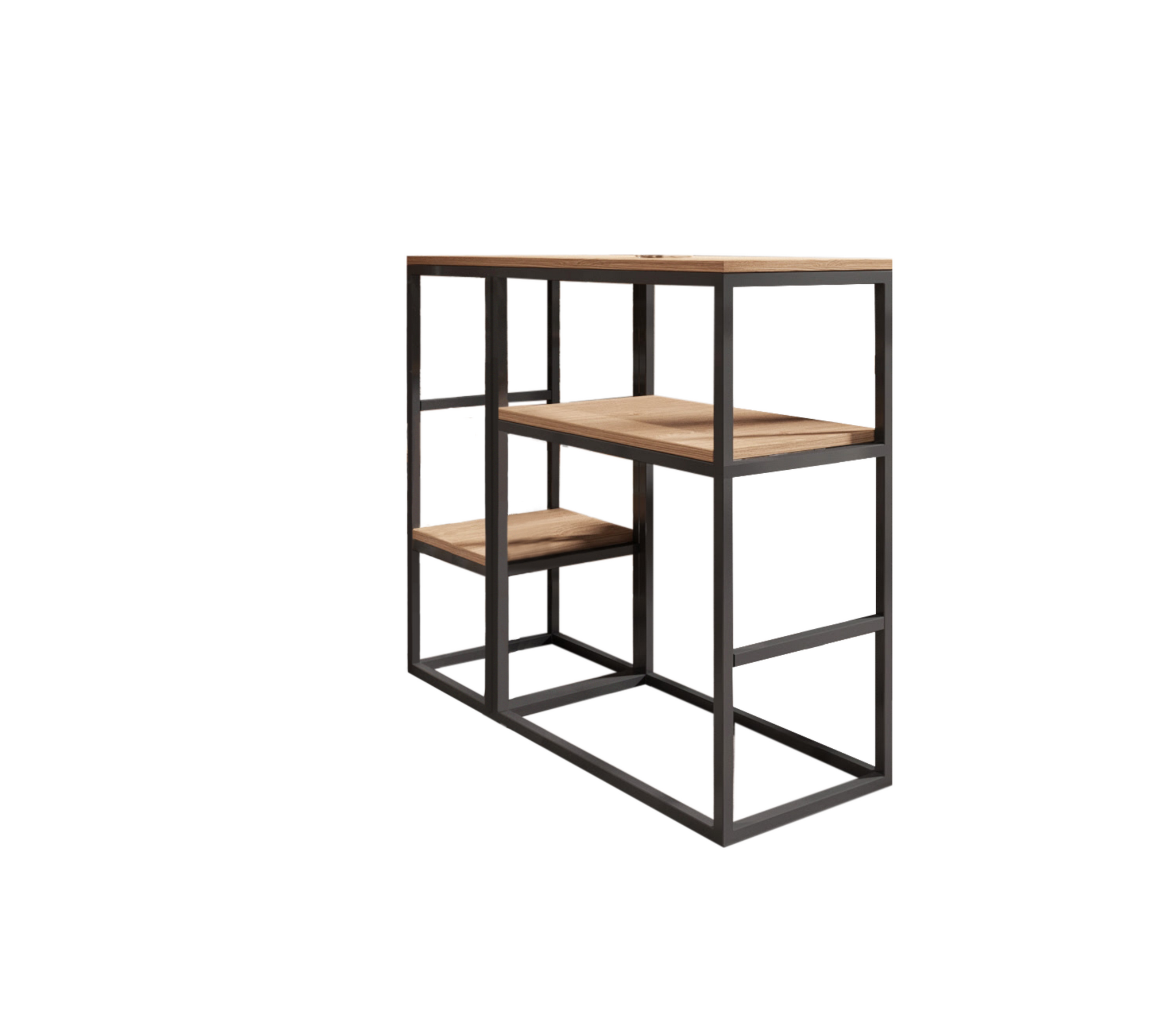 Каркас: профильная труба 20х20 мм.Прочное полимерно-порошковое покрытие черного, белого и серого цвета Дерево: массив сосны 20 мм, покрытое специальным маслом для мебели, цвета на выбор: бесцветный, белый, серый, махагон, орех, морёный дуб, черный, клён, черный графит, голубой графит, темное золото графит, золото графит.