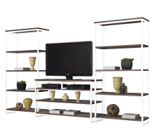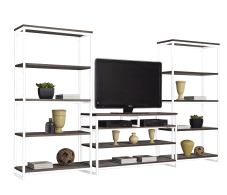С ТВ тумбой , со стеллажом, глянцевые фасады, С полками