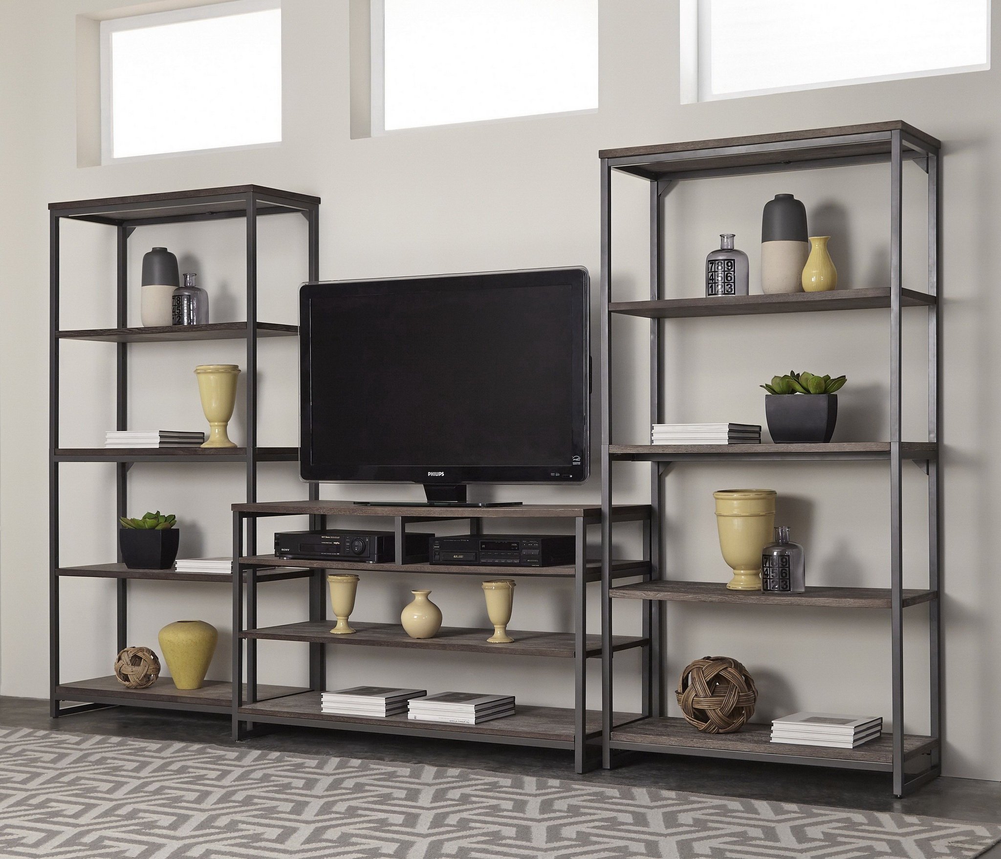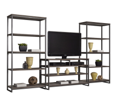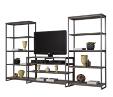 С ТВ тумбой , со стеллажом, глянцевые фасады, С полками
