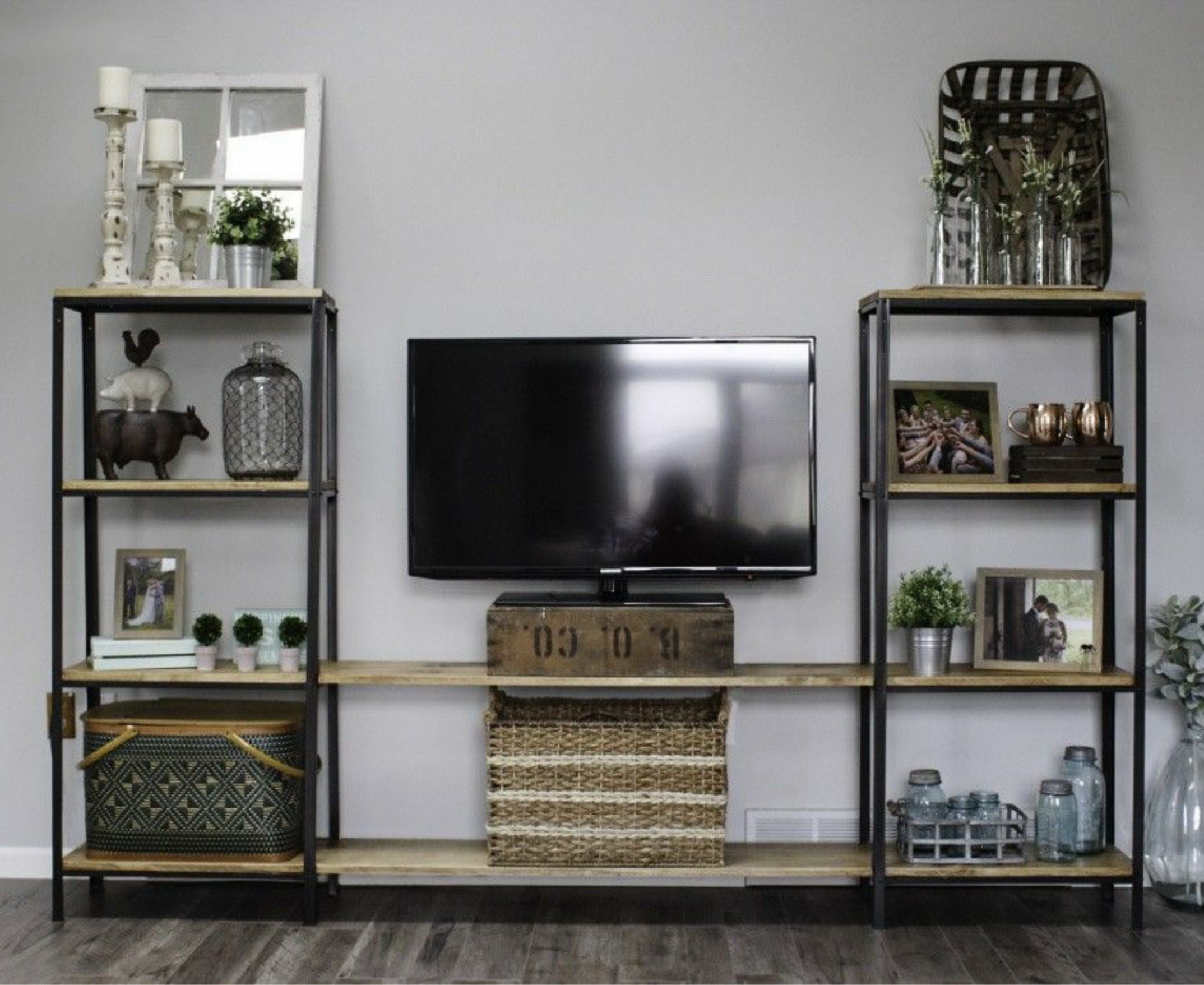 С ТВ тумбой , со стеллажом, глянцевые фасады, С полками