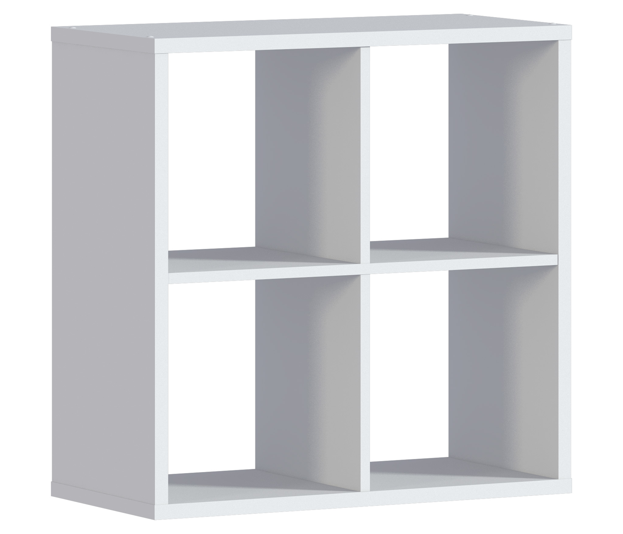 Габаритные размеры – ширина 71 см, высота 71 см и глубина 34 см. Конструктивно стеллаж представляет собой четыре отделения. Выполнен стеллаж из современного и прочного КДСП в белом цвете. Стеллаж идеально подойдет для оформления кабинета, гостиной, детской, спальни и даже прихожей в современном стиле.