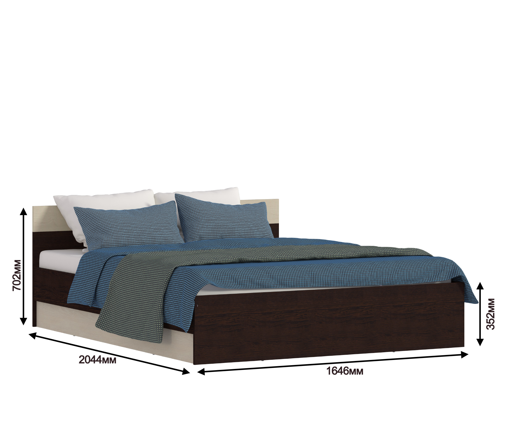 Размеры кровати (ШхВхГ) 164х85х204 см