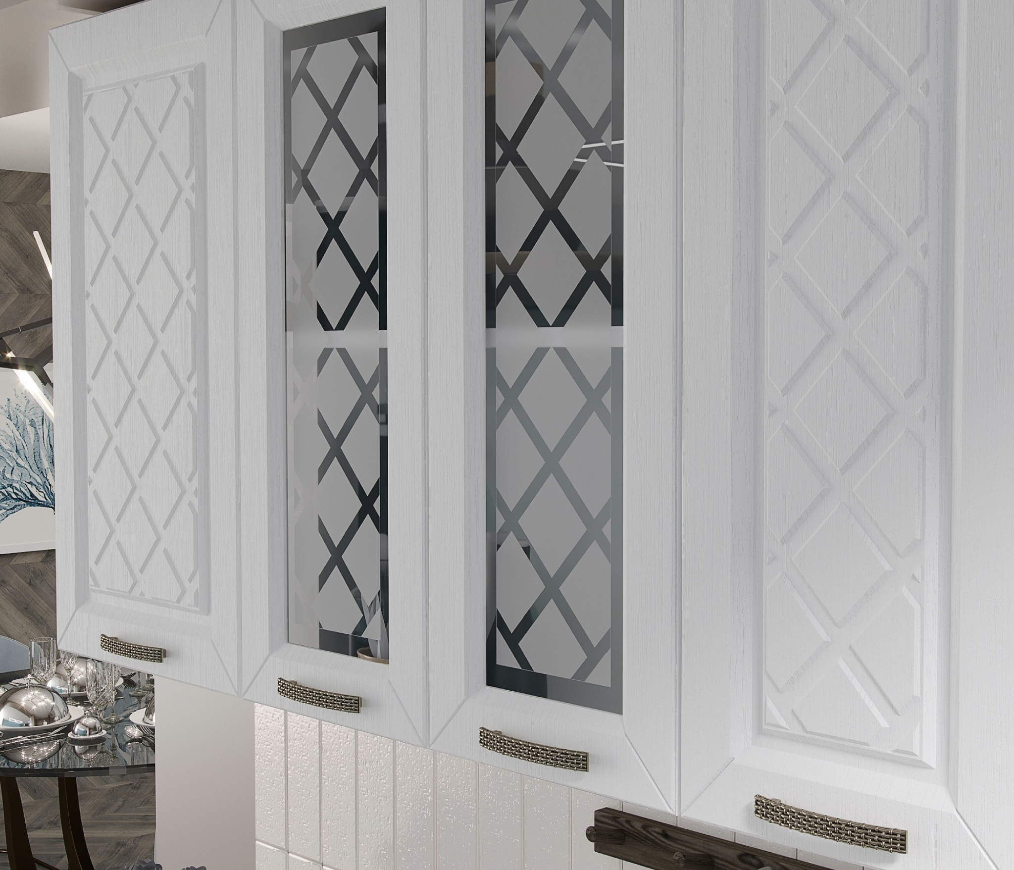 Кухня ""Агава"" акация - изящный гарнитур с фрезеровкой по фасаду и матовыми стёклами.
