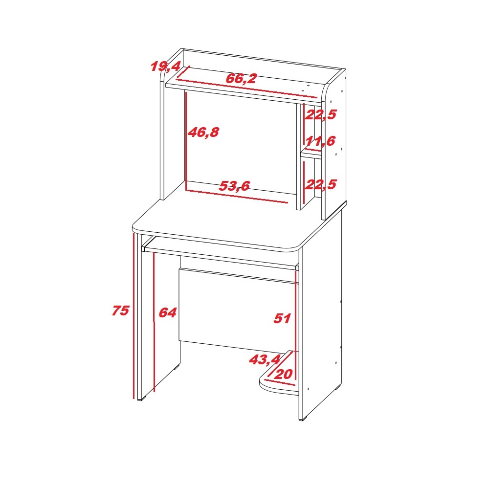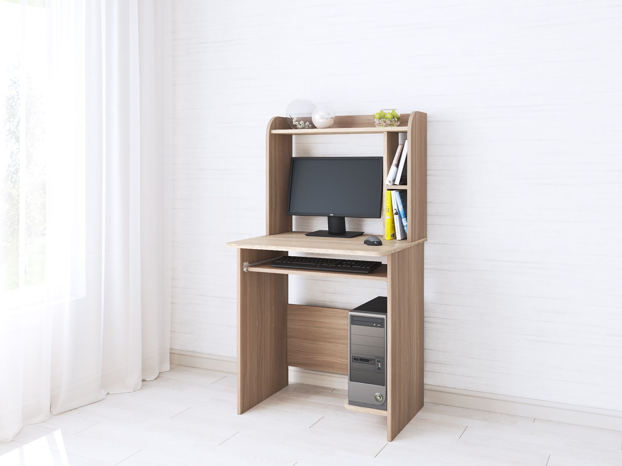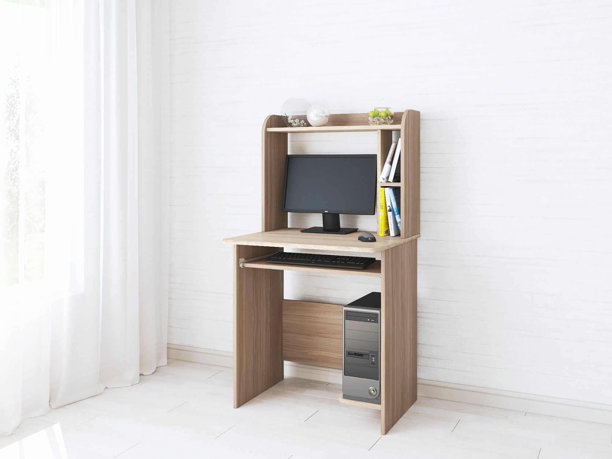 Мечтаете о компактном компьютерном столе с небольшой системой хранения? Стол Грета-1 будет как нельзя кстати! Столешница шириной 70 см позволит организовать рабочую зону даже в малогабаритном помещении и разместить ноутбук или стационарный компьютер. Для установки процессора предусмотрена открытая полка снизу. Выдвижная панель для клавиатуры имеет роликовые направляющие. Опоры стола оснащены пластиковыми подпятниками, которые защищают напольное покрытие от деформации. Модель оборудована функциональной надстройкой с открытыми полками для хранения книг, органайзера или других мелочей, которые необходимо иметь под рукой во время работы.
