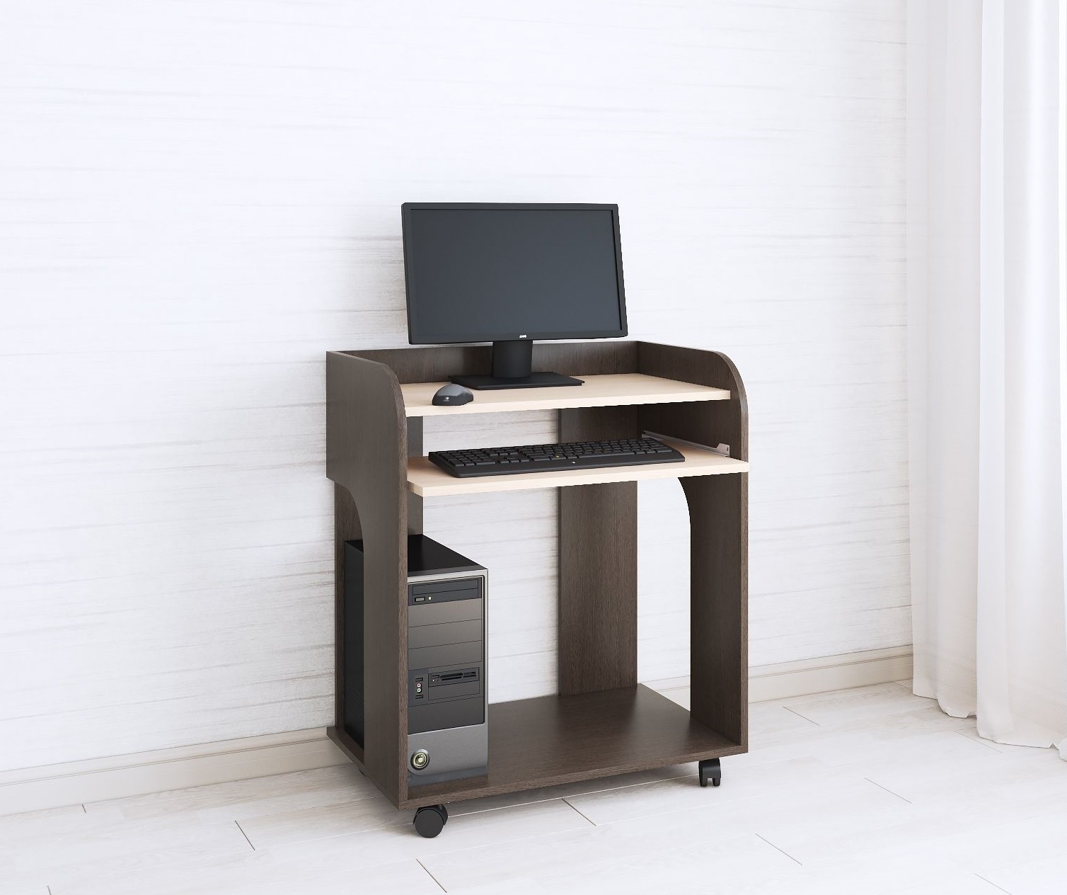 — Выдвижная панель для клавиатуры установлена на роликовые направляющие