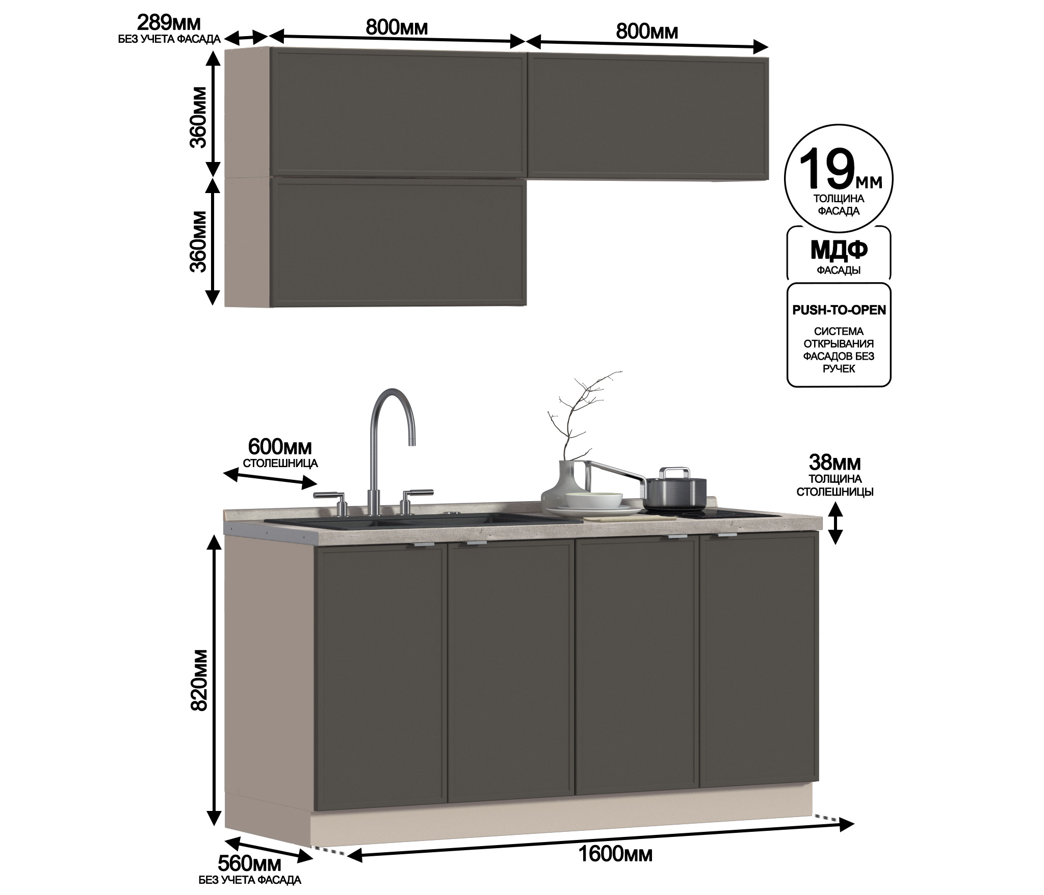 Отзывы о Столплит Кухонный гарнитур Регина Квадро Песочный / Базальт 1,6 м