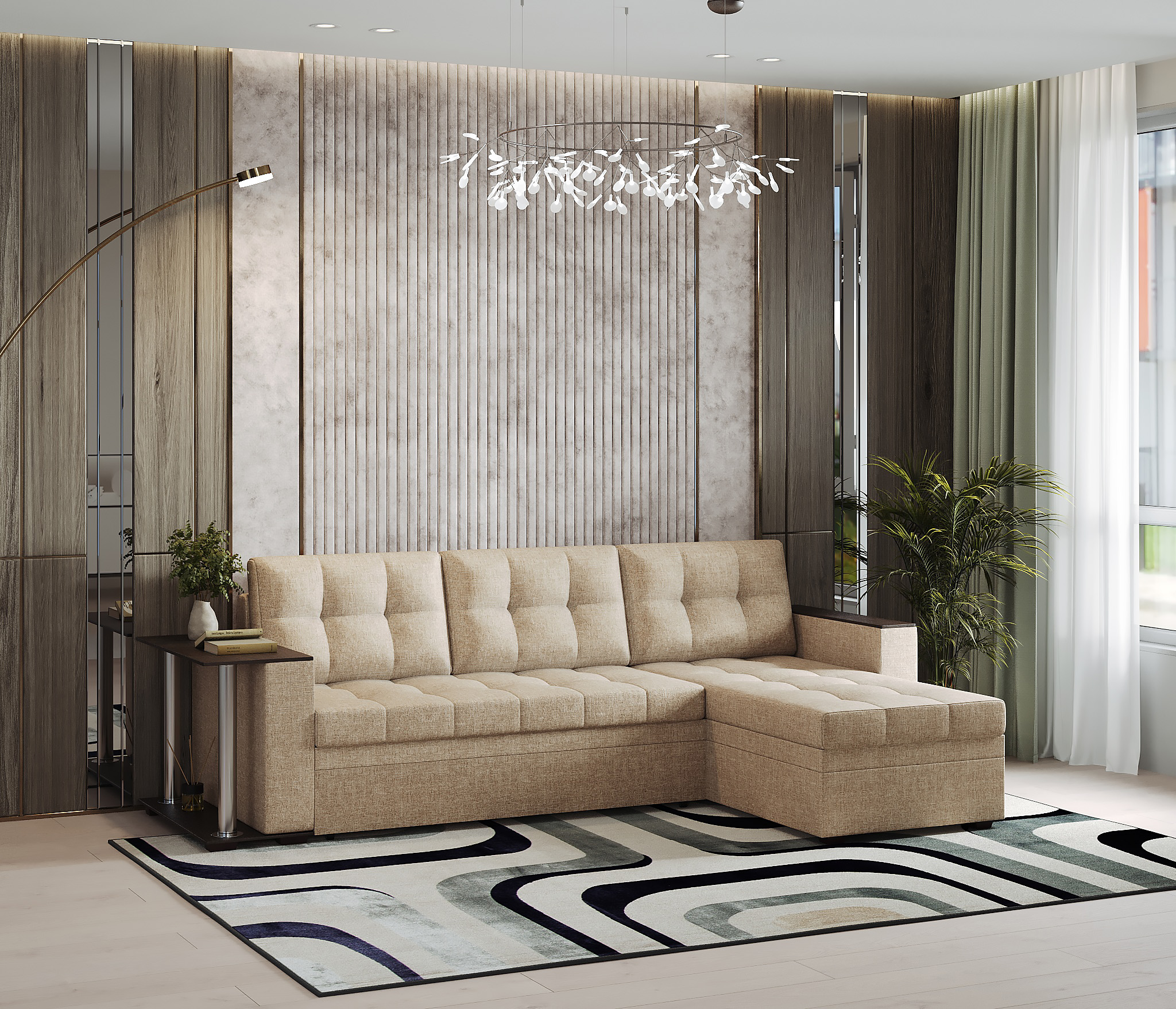 Угловой диван Атланта это идеальный способ грамотно организовать пространство в вашей квартире. Диван может быть и левосторонним, и правосторонним, поэтому вы легко сможете его разместить в любой комнате.