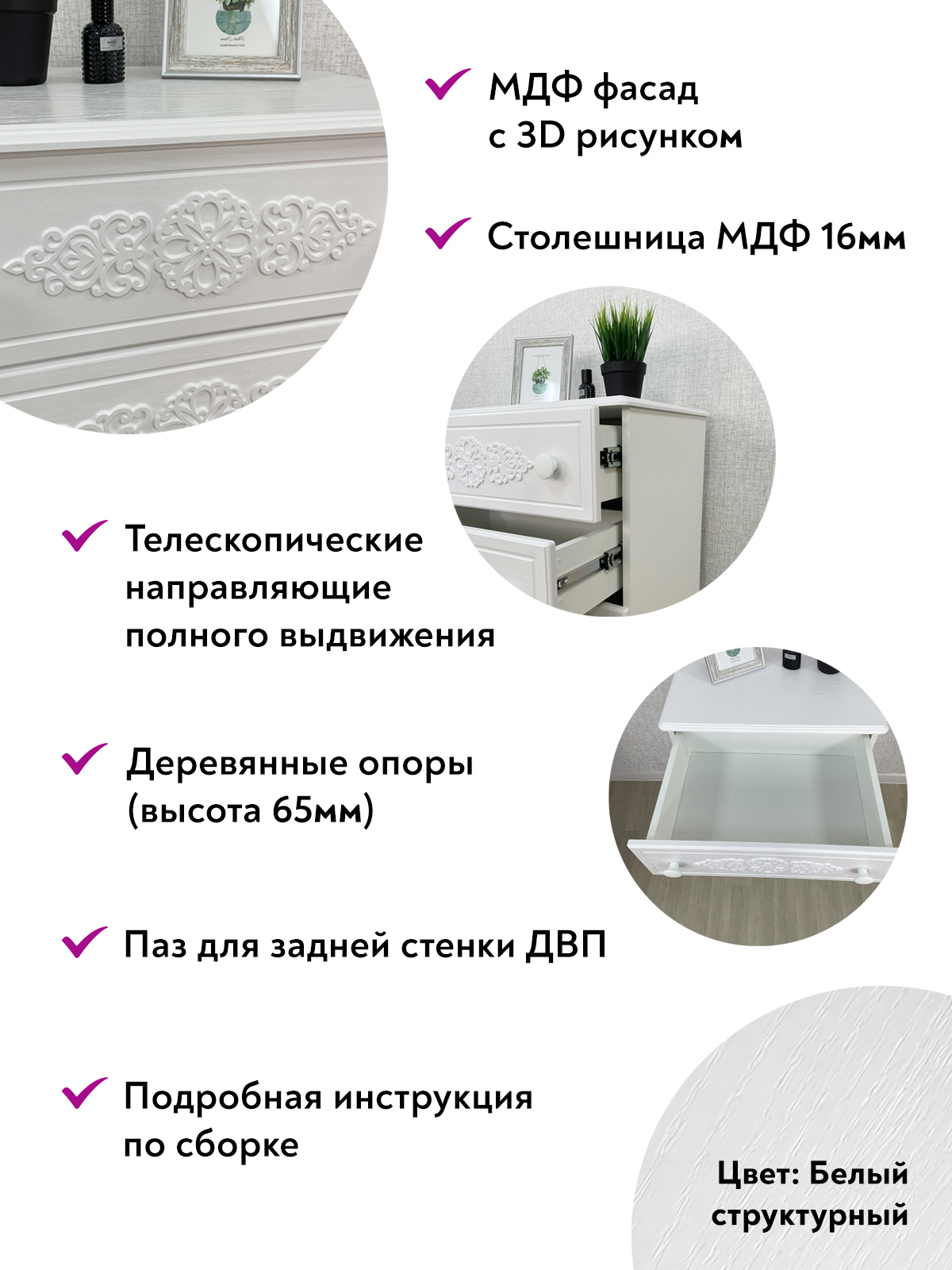 Отзывы о Столплит Комод Ассоль АС-62 Белое дерево
