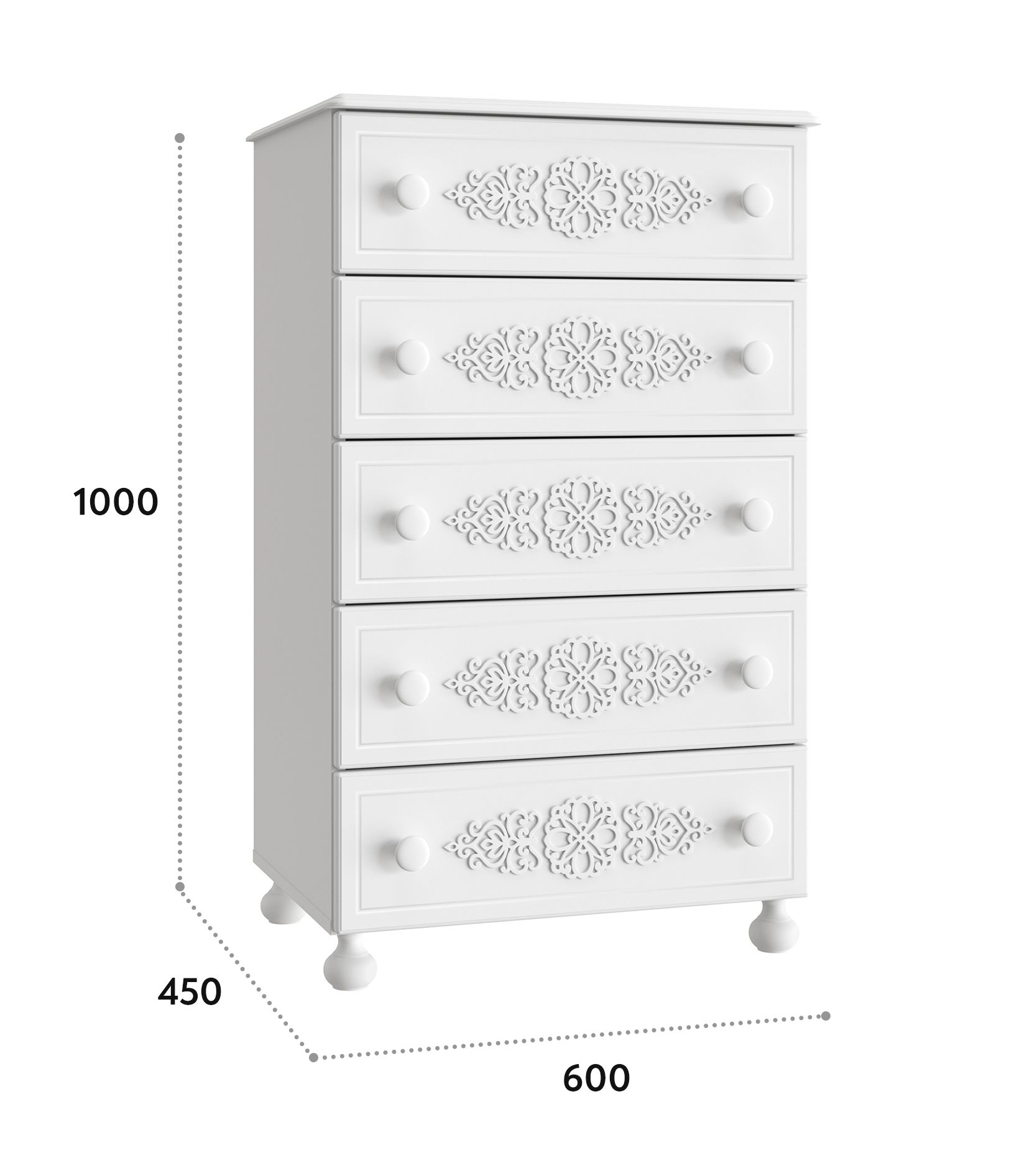 Роскошный комод из коллекции мебели Ассоль АС-62, несомненно, станет украшением Вашей гостиной или спальни. Выдвижные ящики оснащены современными телескопическими направляющими, обеспечивающие плавное и бесшумное выдвижение просторных ящиков. Распашные дверцы имеют качественные петли с плавными доводчиками закрывания. Фурнитура: петли с доводчиками, телескопические направляющие полного выдвижения. Высота опоры 65 мм. Мебель изготовлена из качественной ламинированной ДСП 16 мм. В оформлении фасадов МДФ применяется уникальная технология нанесения объемного узора 3D.