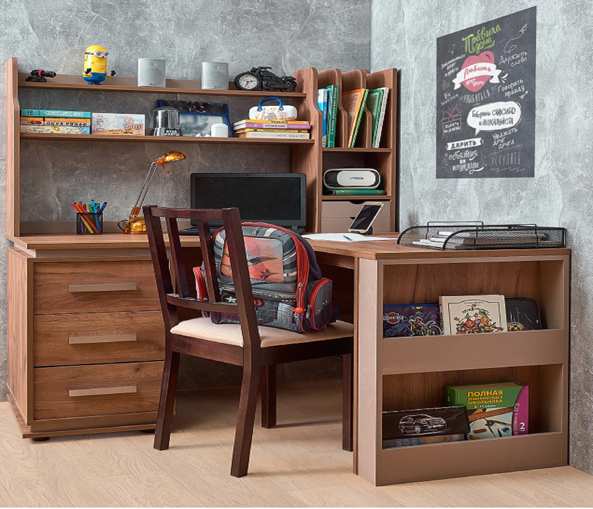 Стеллаж-надстройка – легкий настольный стеллаж станет дополнительным местом для хранения учебников и канцелярских принадлежностей.