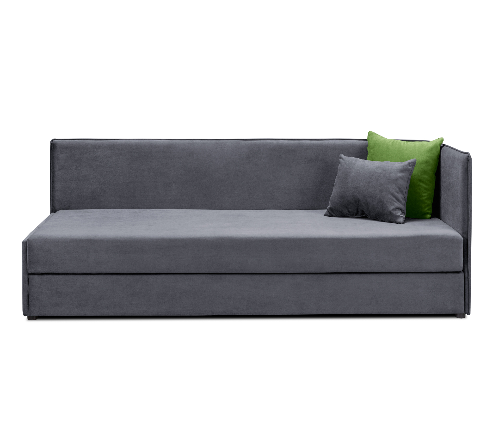 - При заказе вы можете выбрать несколько вариантов исполнения: изголовье справа или изголовье слева. Габариты тахты: 2090*845*800 мм