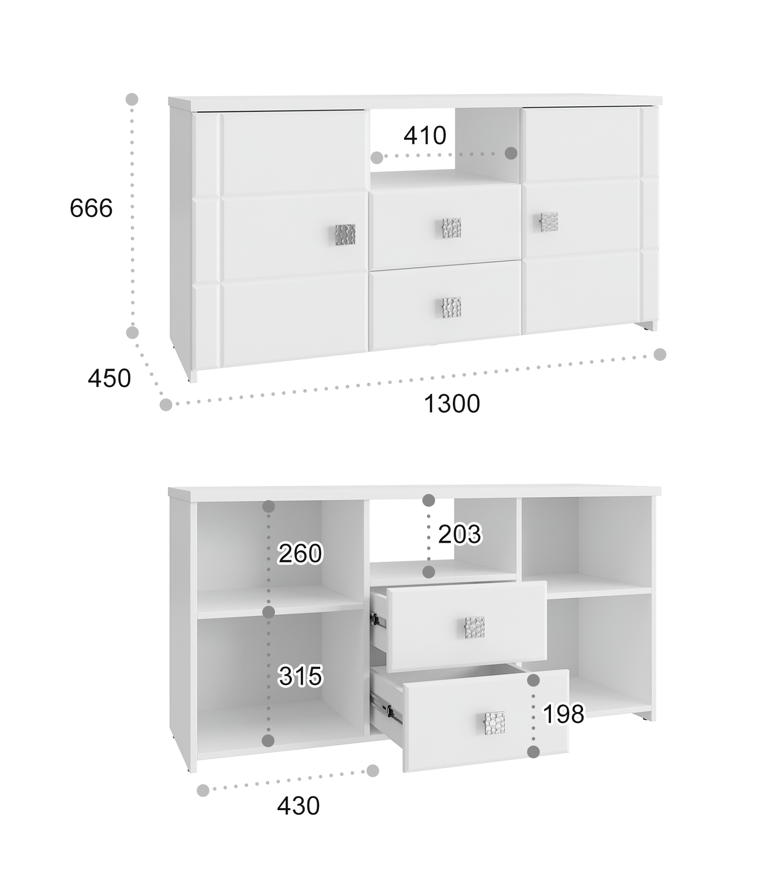 Размеры модуля (ш/в/г) вмм: 1300х666х450.Материал корпуса/фасада: ЛДСП, МДФ.