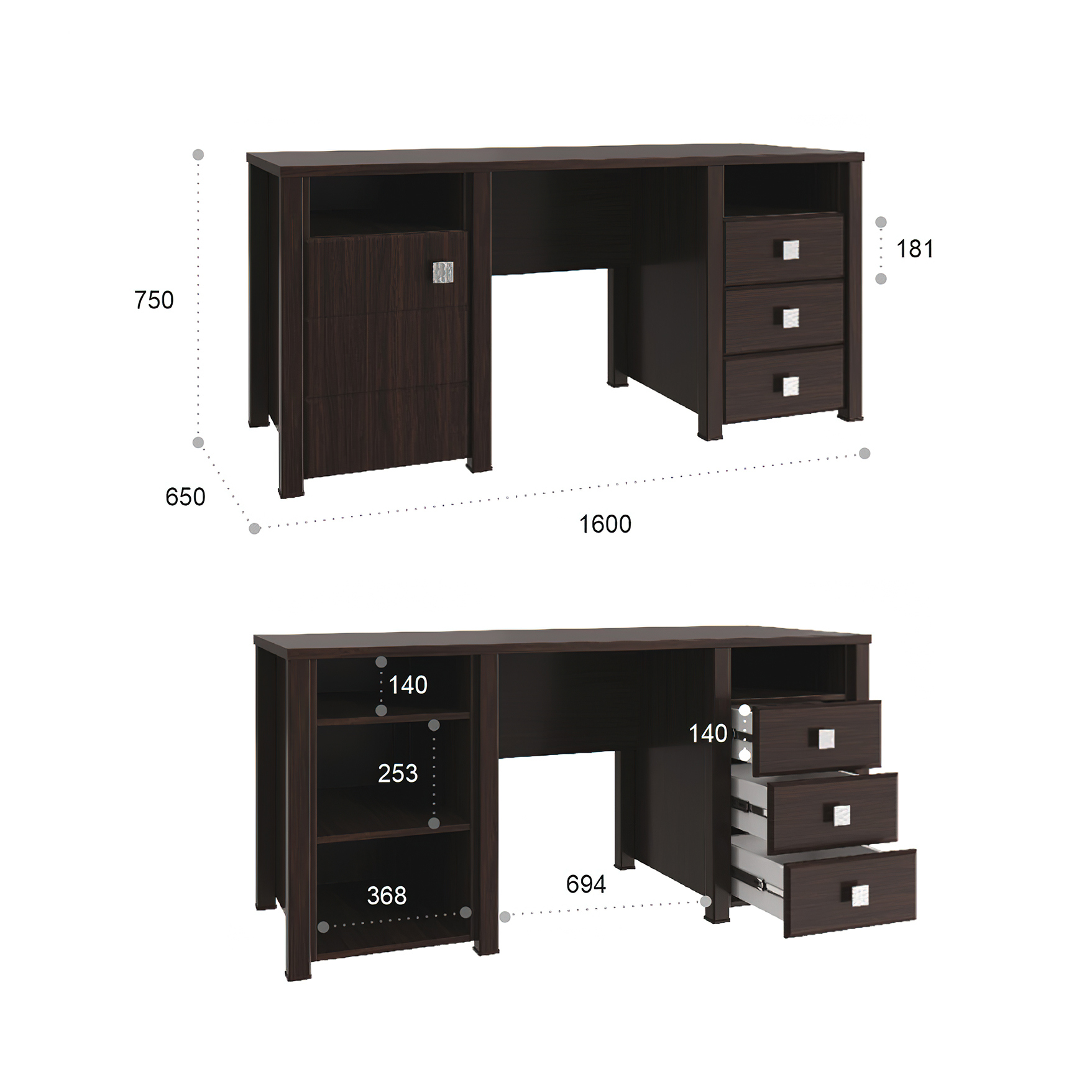 Размеры модуля (ш/в/г) вмм: 1600х750х650. Материал корпуса/фасада: ЛДСП, МДФ.