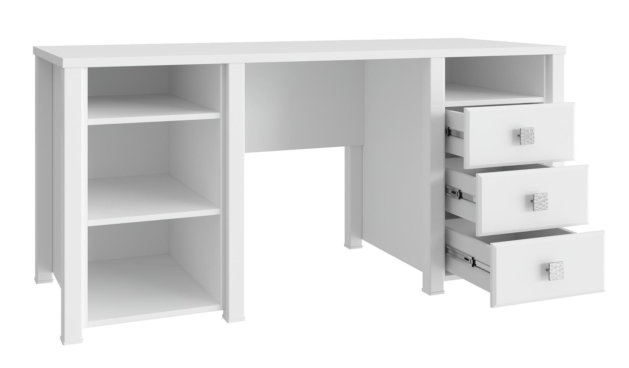 Письменный стол Изабель стильный и практичный вариант для руководителя. В этой модели присутствует всё необходимое для работы. Стол оснащен двумя нишами для документов, три вместительных ящика на телескопических направляющих и закрытое отделение с двумя полками.Важная информация.Мебель доставляется в разобранном виде, в упаковках.