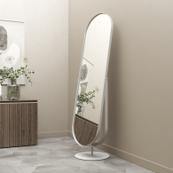 Поворотное напольное зеркало в полный рост в овальной раме на круглом основании напоминает стилистику ар-деко и может использоваться как в жилых, так и в коммерческих помещениях. Например, оно отлично подходит для гардеробных или примерочных в бутиках одежды или ателье. Удобство в том, что зеркало достаточно большого размера и позволяет регулировать угол наклона. Зеркальная поверхность отличается высоким качеством, а сама рама и массивное основание выполнено из высокопрочного металла, что обеспечивает устойчивость и безопасность зеркала.
