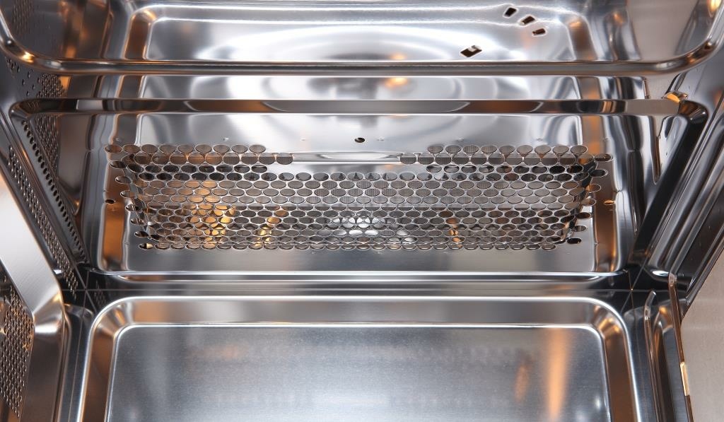 Уникальной особенностью печи является ее сравнительно небольшая глубина, поэтому ее можно встроить даже в навесные шкафы глубиной 34 см.