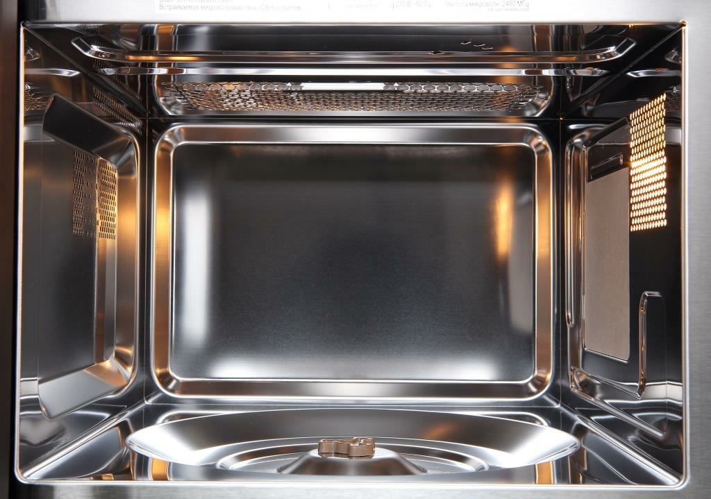 Характеристики: 20 л, номинальная входная мощность микроволны 1050 Вт, номинальная выходная мощность микроволны 700 Вт, гриль 1000 Вт, дисплей Snow White, электронное управление, 8 автоматических программ, разморозка по весу и времени, комби режимы, внутреннее покрытие сталь, нержавеющая сталь + черное стекло, габариты для встраивания (ШхВхГ): 560х362х320 мм.
