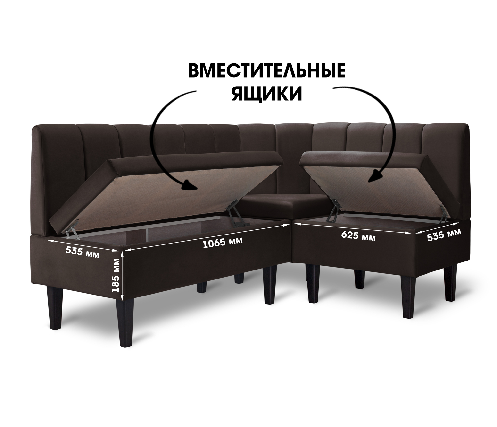 Хранение. В кухонном уголке "Лео" предусмотрены ящики для хранения.