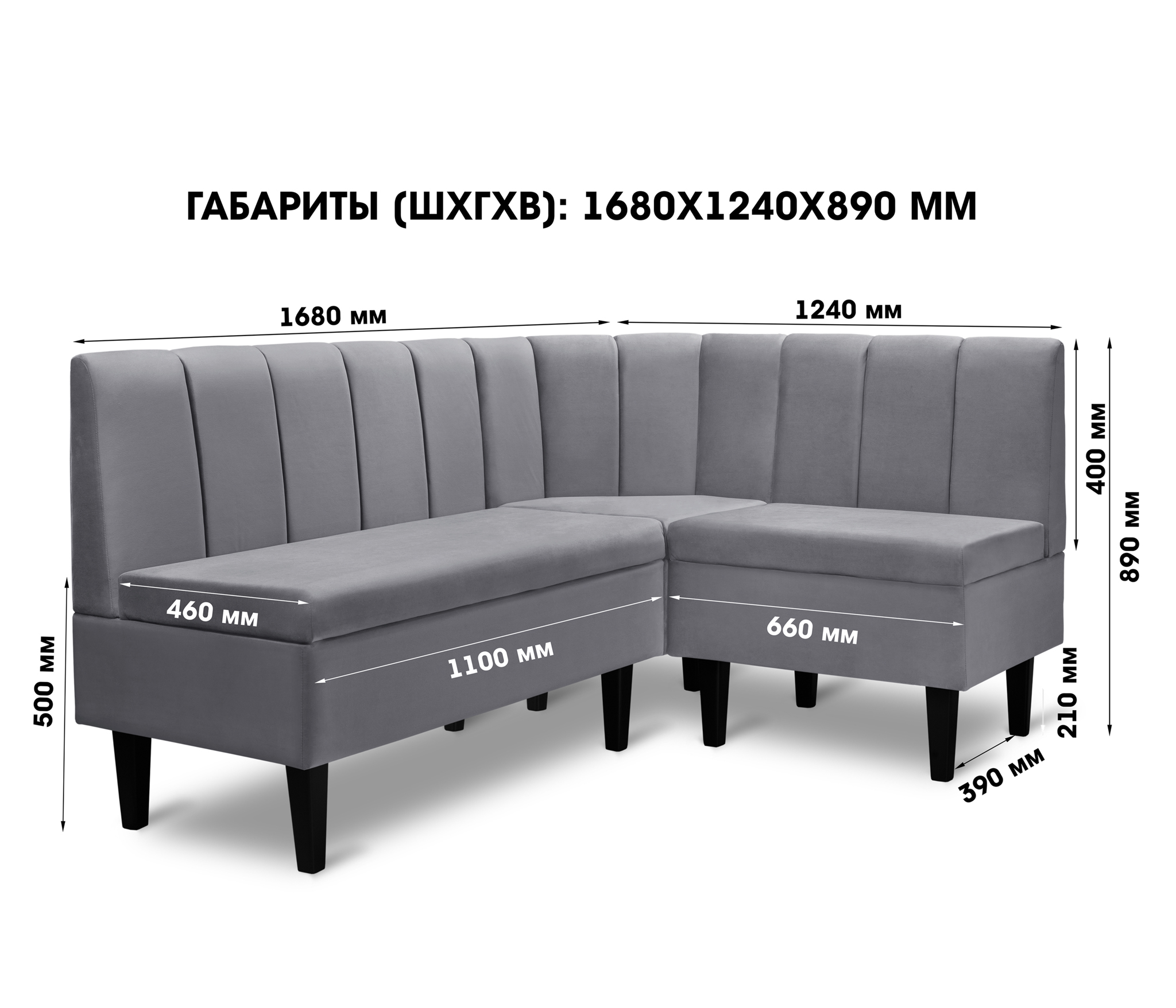 Диван угловой Лео, микровелюр (Серый) Код I0000313183