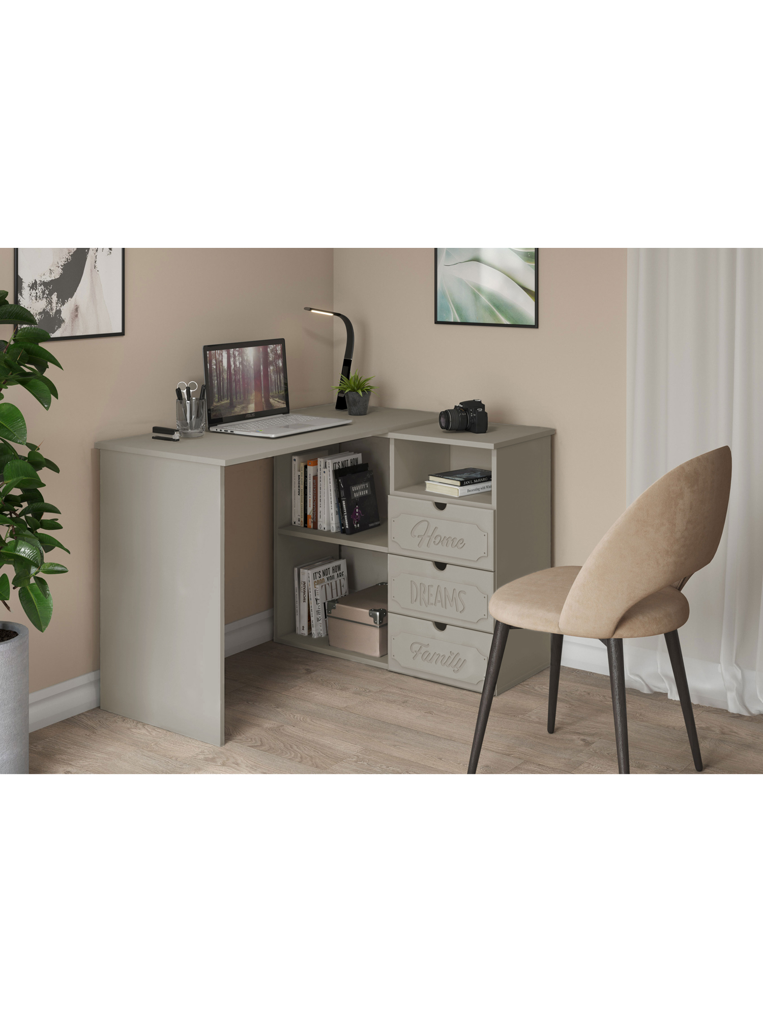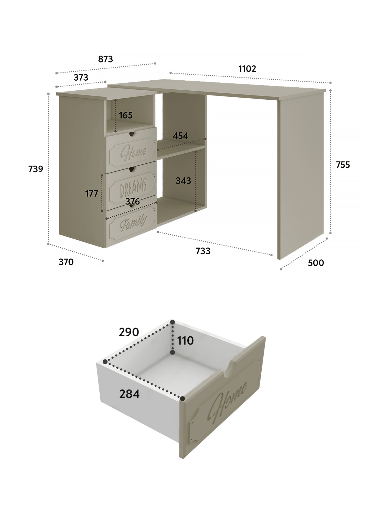 Угловой стол ДримСтар ДС-5 станет отличным местом для работы. Стол оснащен тумбой с тремя выдвижными ящиками, нишей и двум полками, где можно хранить блокнот, канцелярские принадлежности, книги и журналы. Стильный дизайн позволит разместить в любом современной интерьере. Модуль может быть собран в зеркальном варианте "правым" или "левым". Фурнитура: телескопические направляющие полного выдвижения.
