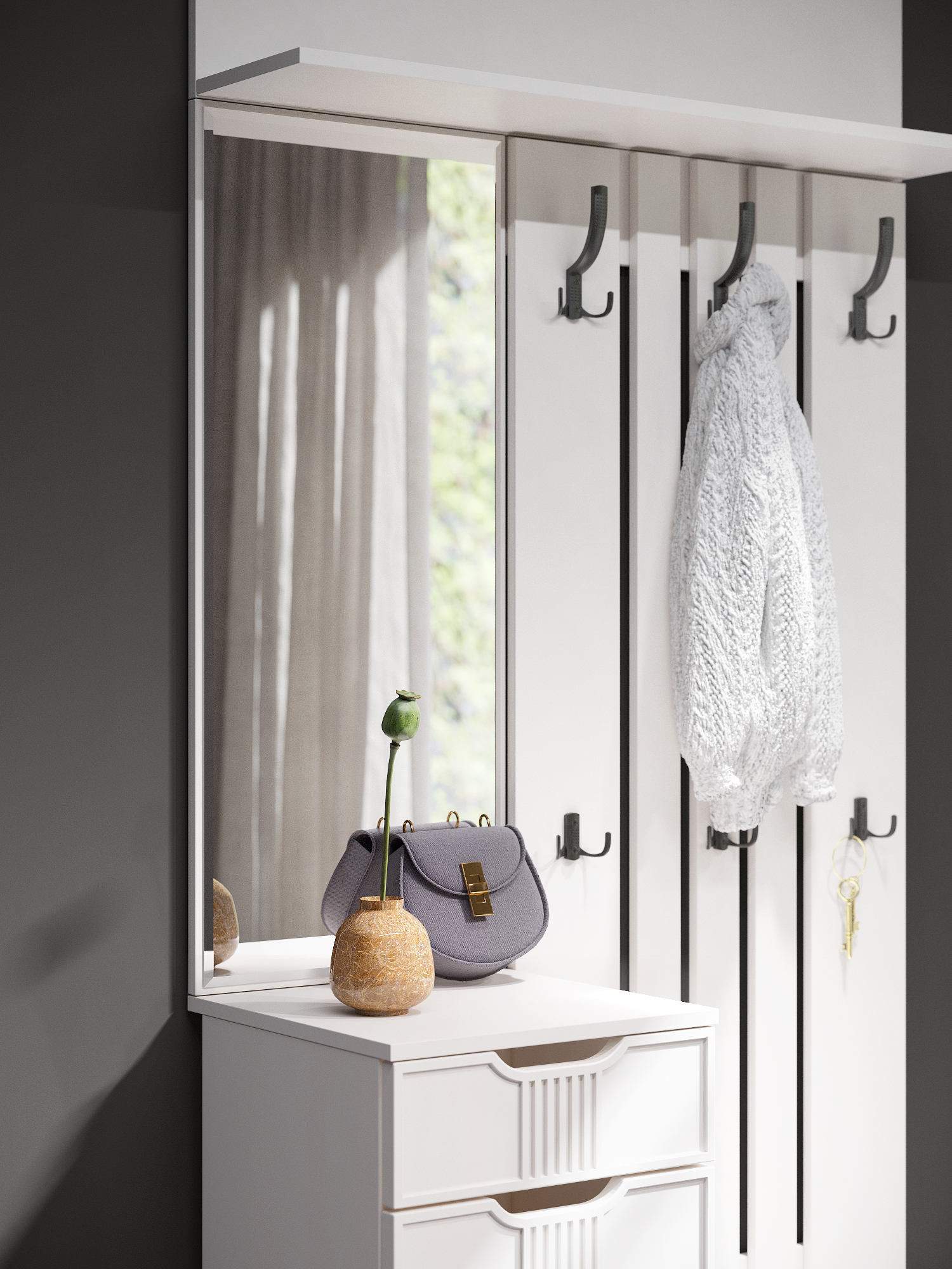 Зеркало Эмилия ЭЛ-5 можно установить как вертикально, так и горизонтально. Для крепления зеркала к стене в комплекте фурнитуры идут удобные регулируемые подвески. Фацет по краю придает изделию законченный вид, выразительность и дополнительный блеск. Зеркальное полотно установлено на панель из лдсп. Размер зеркального полотна: 91х38 см. Размер зеркала полностью с учетом рамки: 93х40 см. Сочетая зеркало с другими модулями из коллекции Эмилия, Вы можете создать стильную и лаконичную прихожую у себя дома.