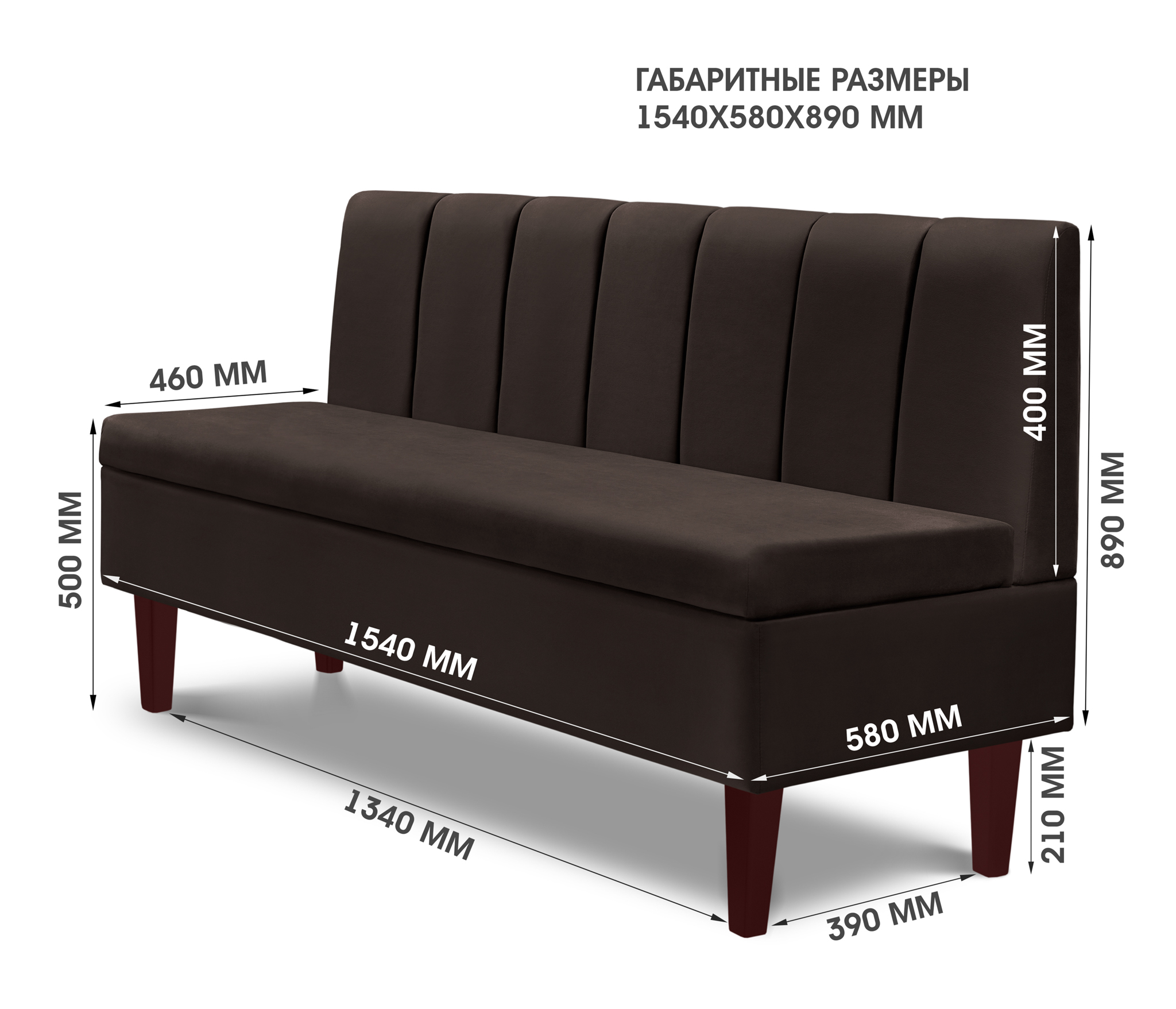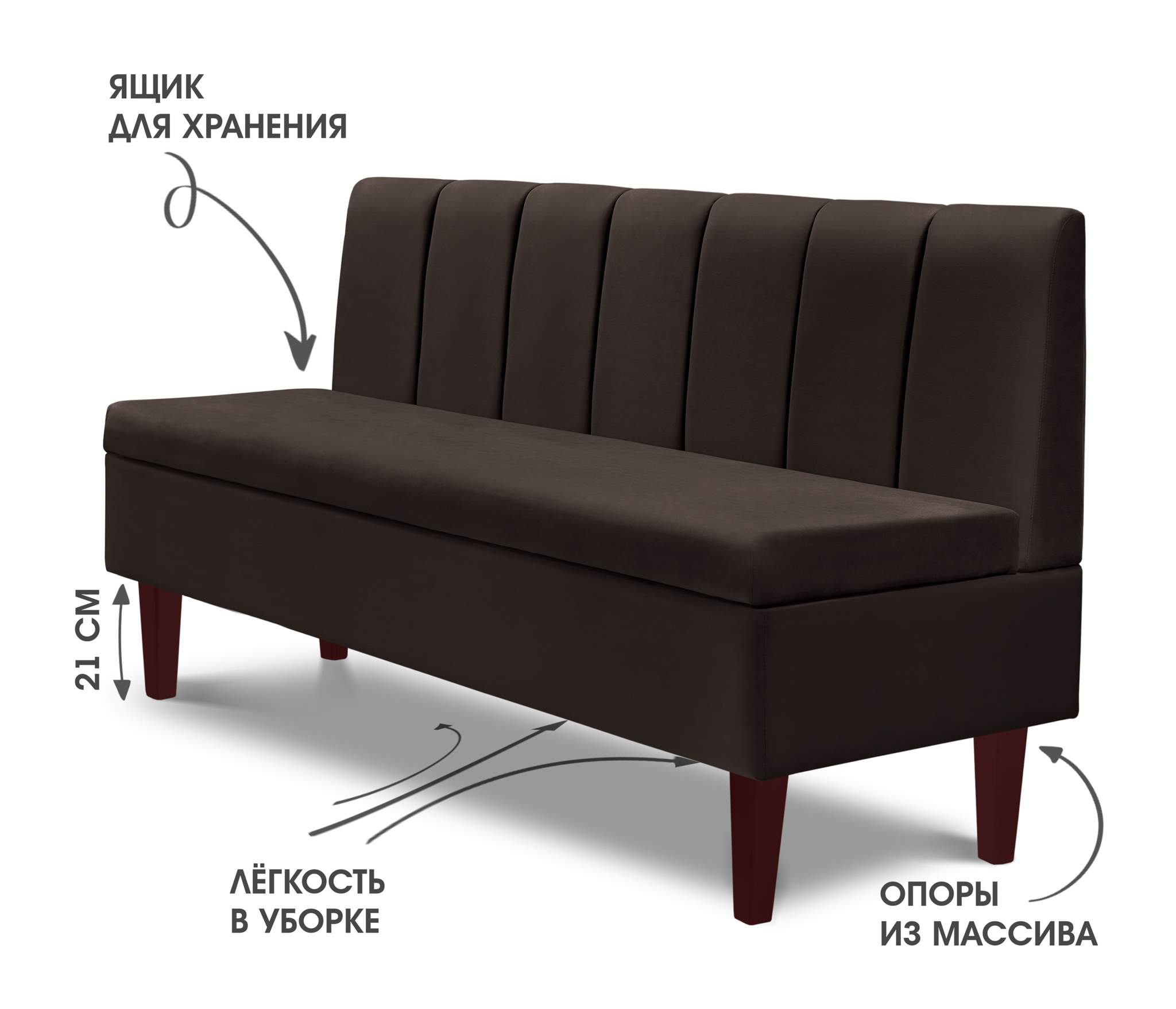 Диван прямой на ножках Лео 154, микровелюр (Коричневый) Код I0000315293