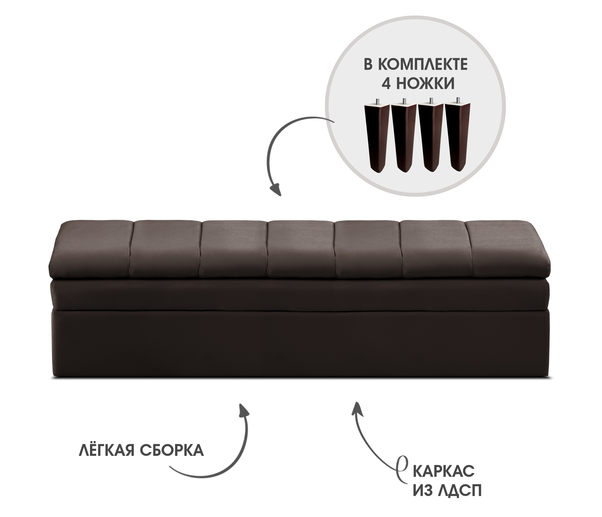 Мы в восторге! Очень красивый и удобный диванчик! Внутри огромный ящик для хранения, и при этом он аккуратно стоит на ножках.