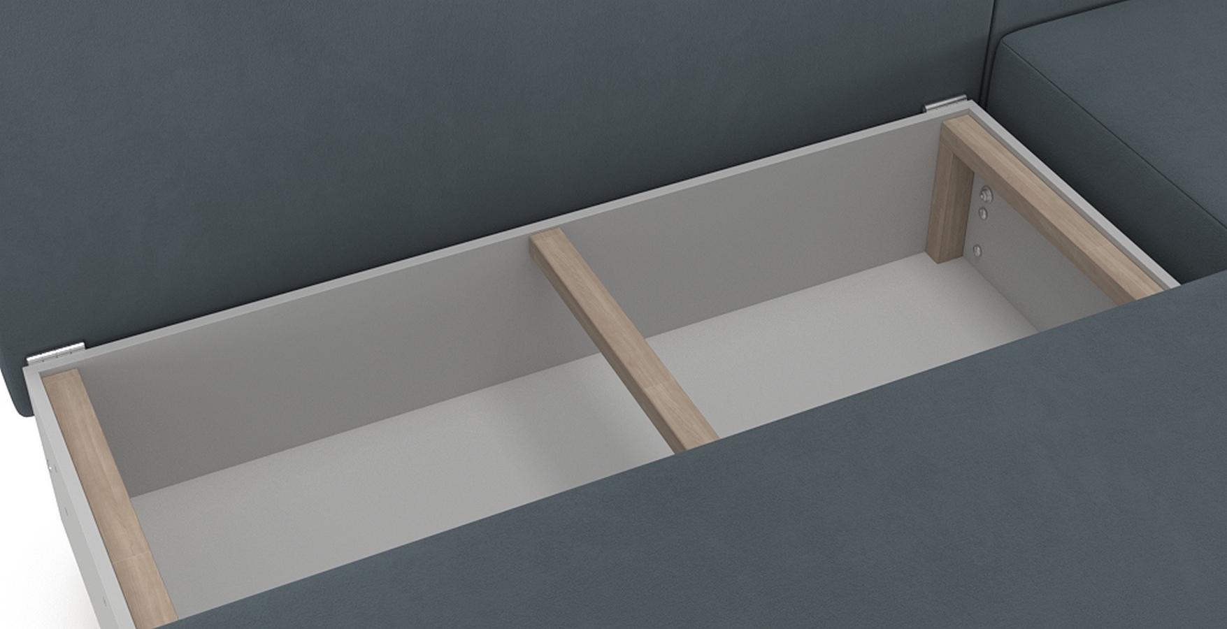 Удобный угловой диван, приятная велюровая обивка, есть ящик для хранения белья, что большой плюс, тем более, он довольно объемный. Спальное место просторное, очень удлобно, к покупке советую.