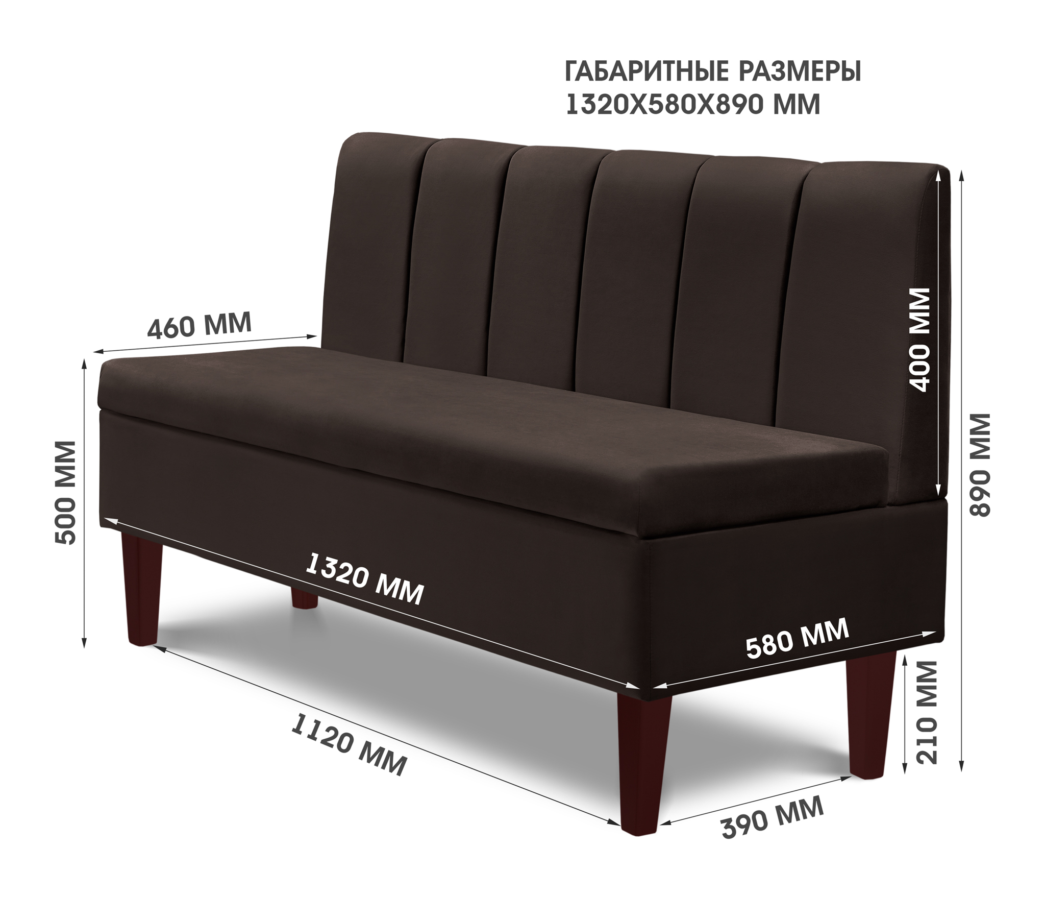 Диван прямой на ножках Лео 132, микровелюр (Коричневый) Код I0000318989