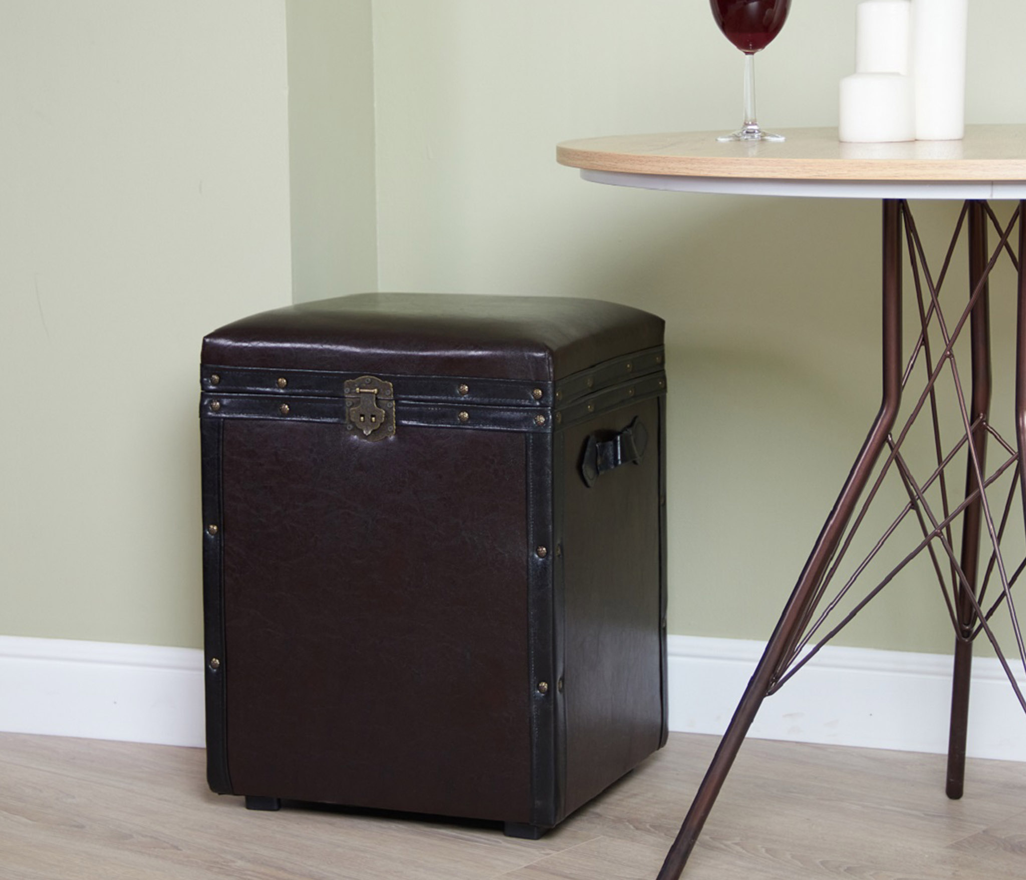 Банкетка ""Удобная"" вертикальная с ящиком для хранения представлена в классическом стиле. Пуфик обтянут экокожей благородного шоколадного цвета и декорирован замком и гвоздями бронзового цвета. . Пуфик в доме это, прежде всего, удобство и комфорт для хозяина квартиры и его гостей, которые могут присесть на нее и переобуться. Нередко в коридоре для этой цели ставят стул или табурет. Но при наличии ящика, банкетка подходит для хранения обуви, средств по ее уходу, других принадлежностей. Этот предмет мебели станет дополнительным элементом декора. Внутреннее пространство банкетки отделано спанбондом. Домашний сундук пуф выглядит роскошно и презентабельно. Пуфик подойдет в прихожую, коридор, в спальню, в гостинную, в детскую, в кухню, в зал прекрасно впишется в любой интерьер офиса, дома или дачи. Пуф мягкий идеальный подарок мужчине или женщине на свадьбу, годовщину или юбилей. Подарок любимой, маме, жене, подруге. Сундук очень удобен в использовании в качестве пуфа или банкетки. Его крышка изготовлена из прочного материала, способного выдерживать большую вертикальную нагрузку до 150кг. Объемное внутреннее пространство банкетки позволяет хранить различные предметы домашнего обихода и вещи. Элегантный пуфик банкетка будет служить местом для сидения и дополнительным местом для хранения. Пуфики удобны в качестве тумбы, прикроватного туалетного столика, полки, обувницы, стула, коробки для хранения. В ящик банкетки можно сложить обувь, книги, игрушки , постельное белье. Пуф с крышкой , банкетки разных цветов , размеров и фактур : большие, высокие, круглые, велюр, из рогожки, на ножках и без, из экокожи, ткани, с каретной стяжкой представлены в нашем магазине. Банкетку удобно использовать для сидения и в качестве подставки для ног или лежака для животных. Прочный каркас, качественные материалы, эксклюзивный дизайн, стильная обивка не оставят равнодушными взрослых и детей. Наполнитель для пуфа упругий поролон. Такой пуфик-банкетка альтернатива круглому пуфу, бескаркасному пуфу, отличная замена пуфа мешка.