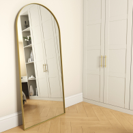 Среди зеркал в полный рост представленная модель в виде арки пользуется особой популярностью. Секреты просты – высокое качество, надёжность и большие функциональные возможности. Это отличное примерочное зеркало, которое можно использовать как в приставном варианте, так и в настенном. Рама зеркала выполнена из прочного металла и обеспечивает отличную устойчивость конструкции. Зеркальное полотно является продукций известного бельгийского бренда AGC, и отличатся высоким качеством. На тыльной стороне рамы есть специальные элементы для крепления к стене.
