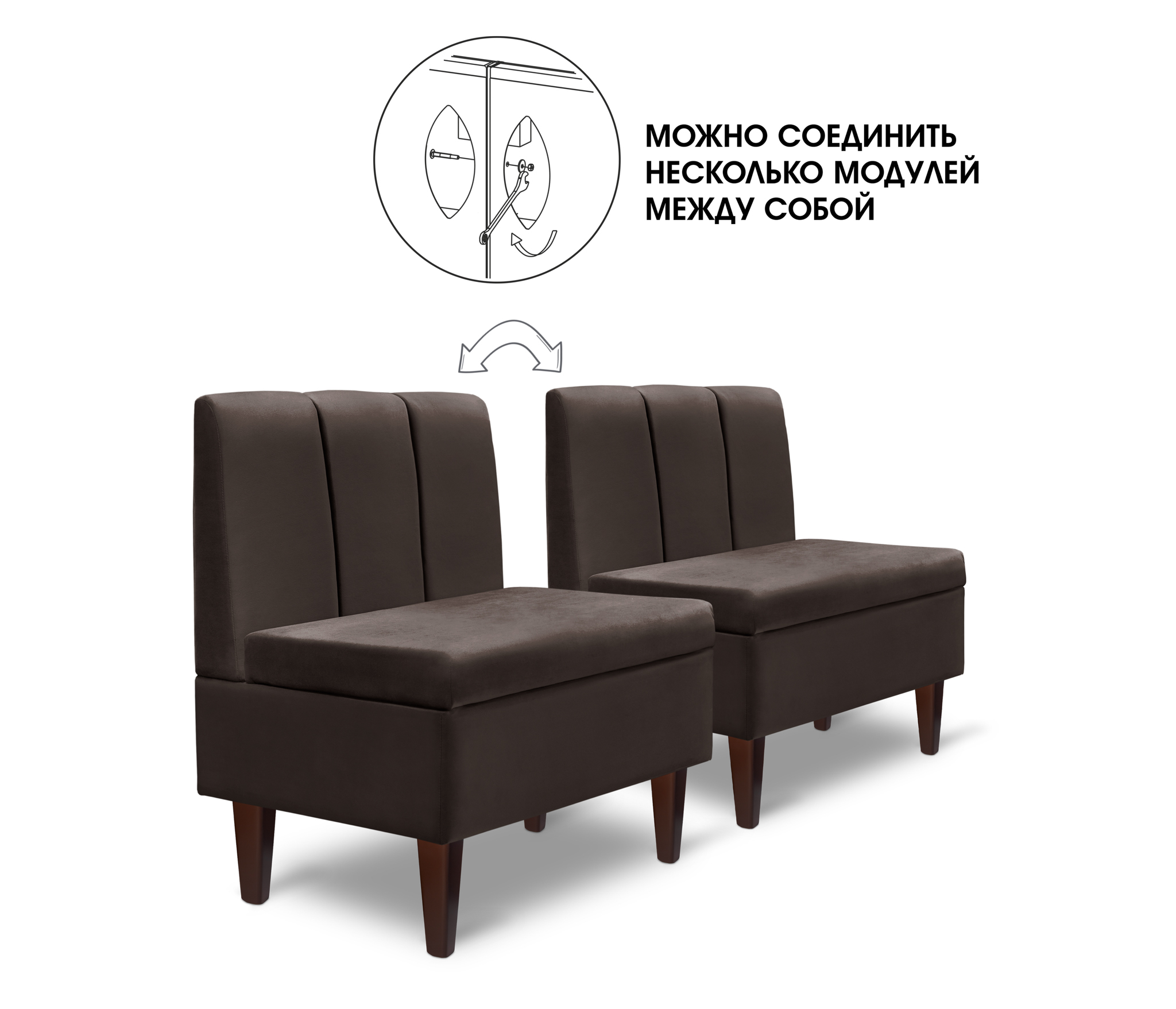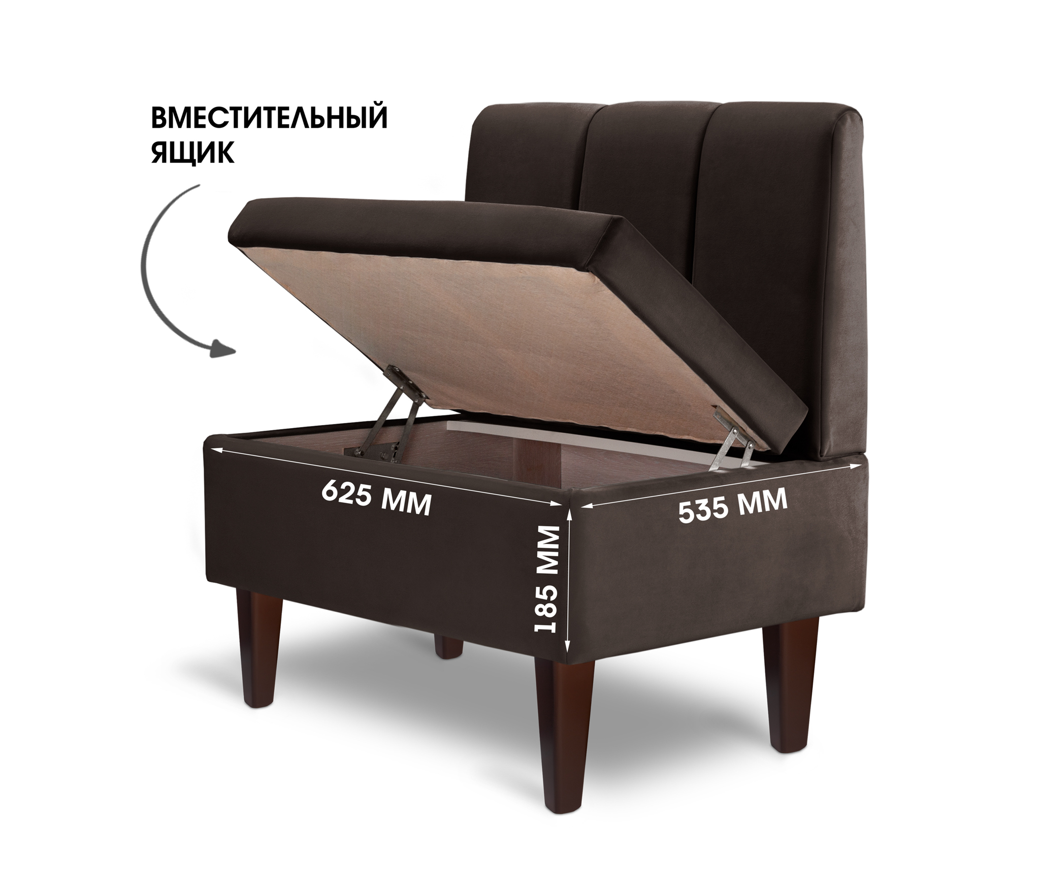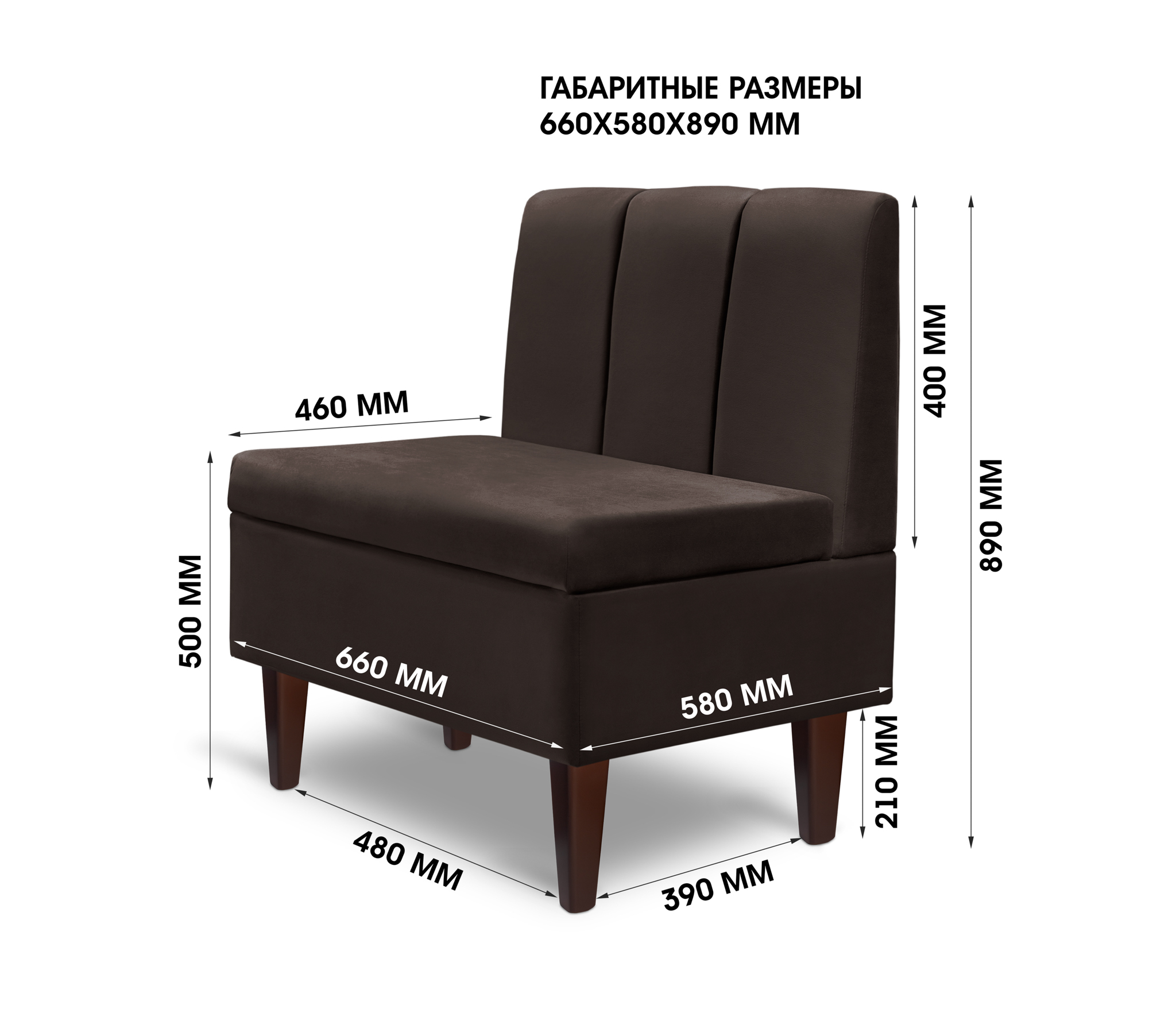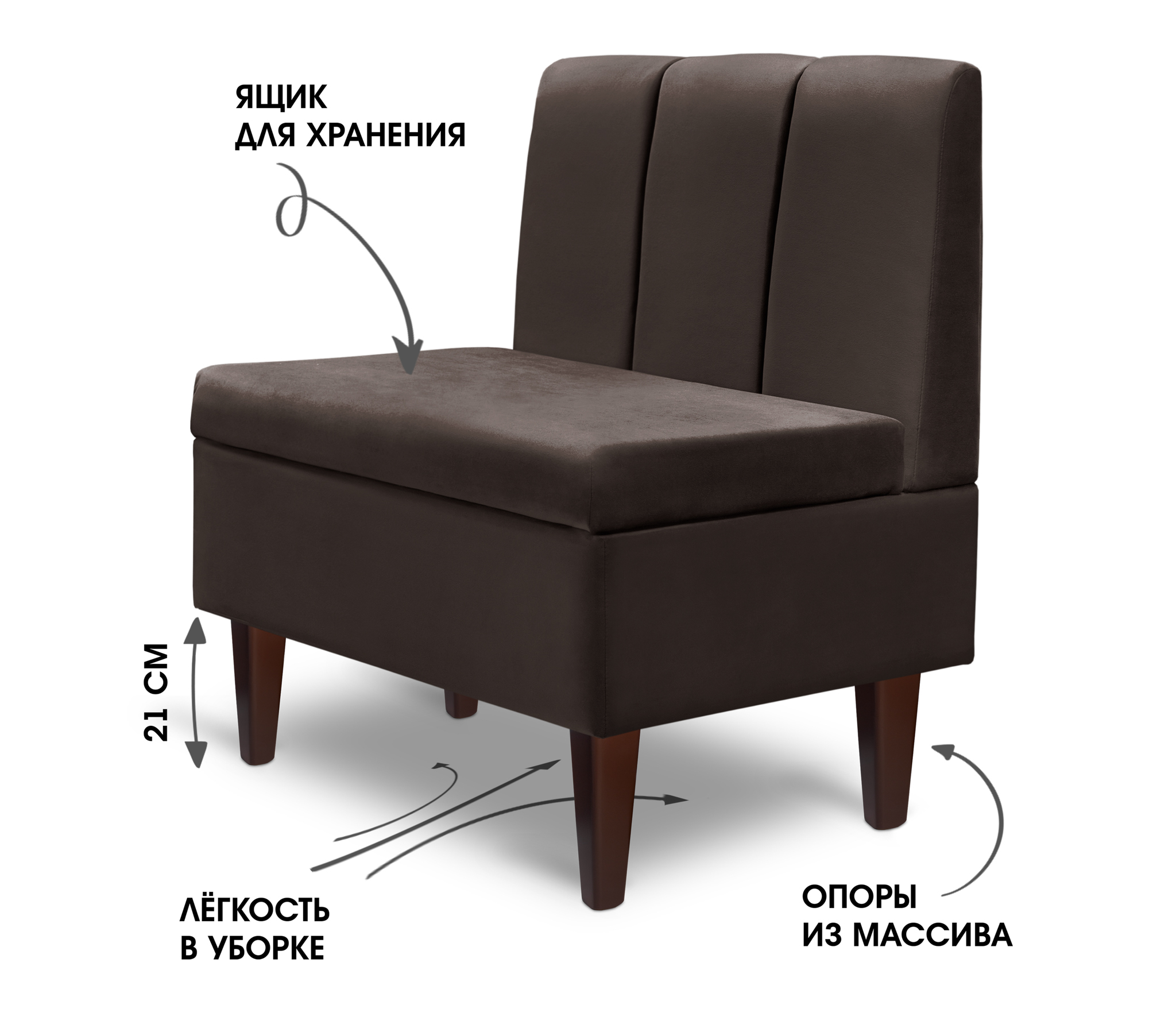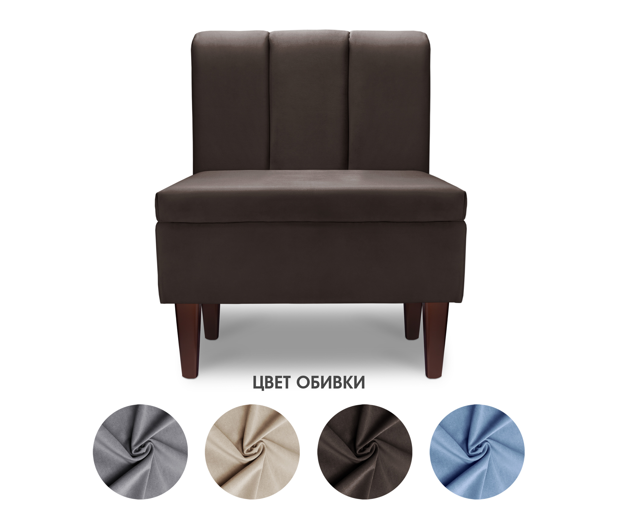 Диван прямой на ножках Лео 66, микровелюр (Коричневый) Код I0000319576