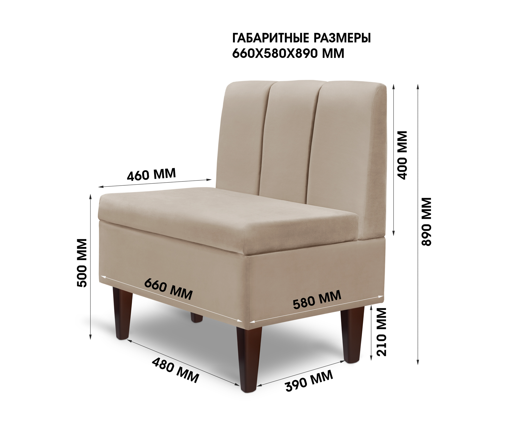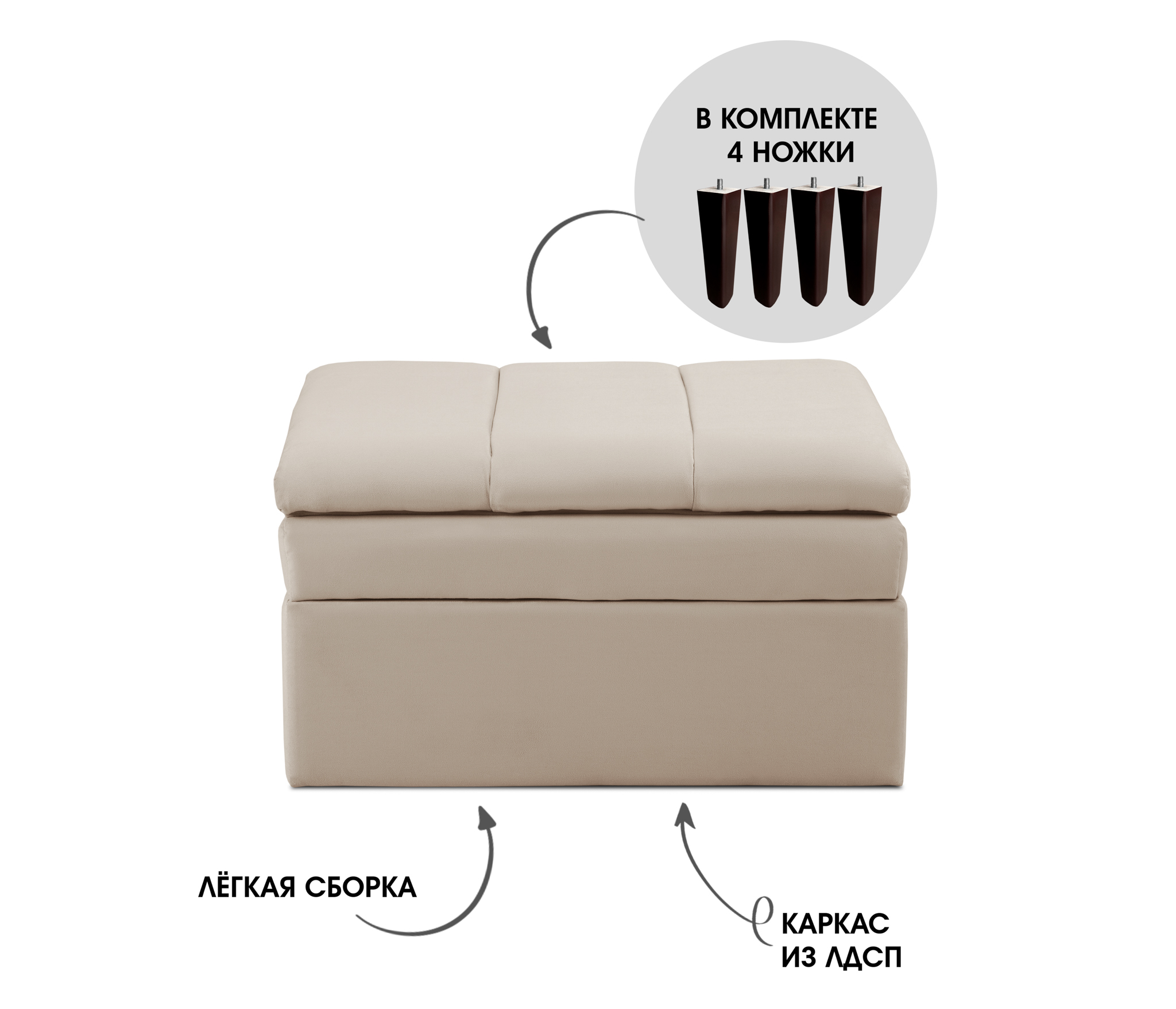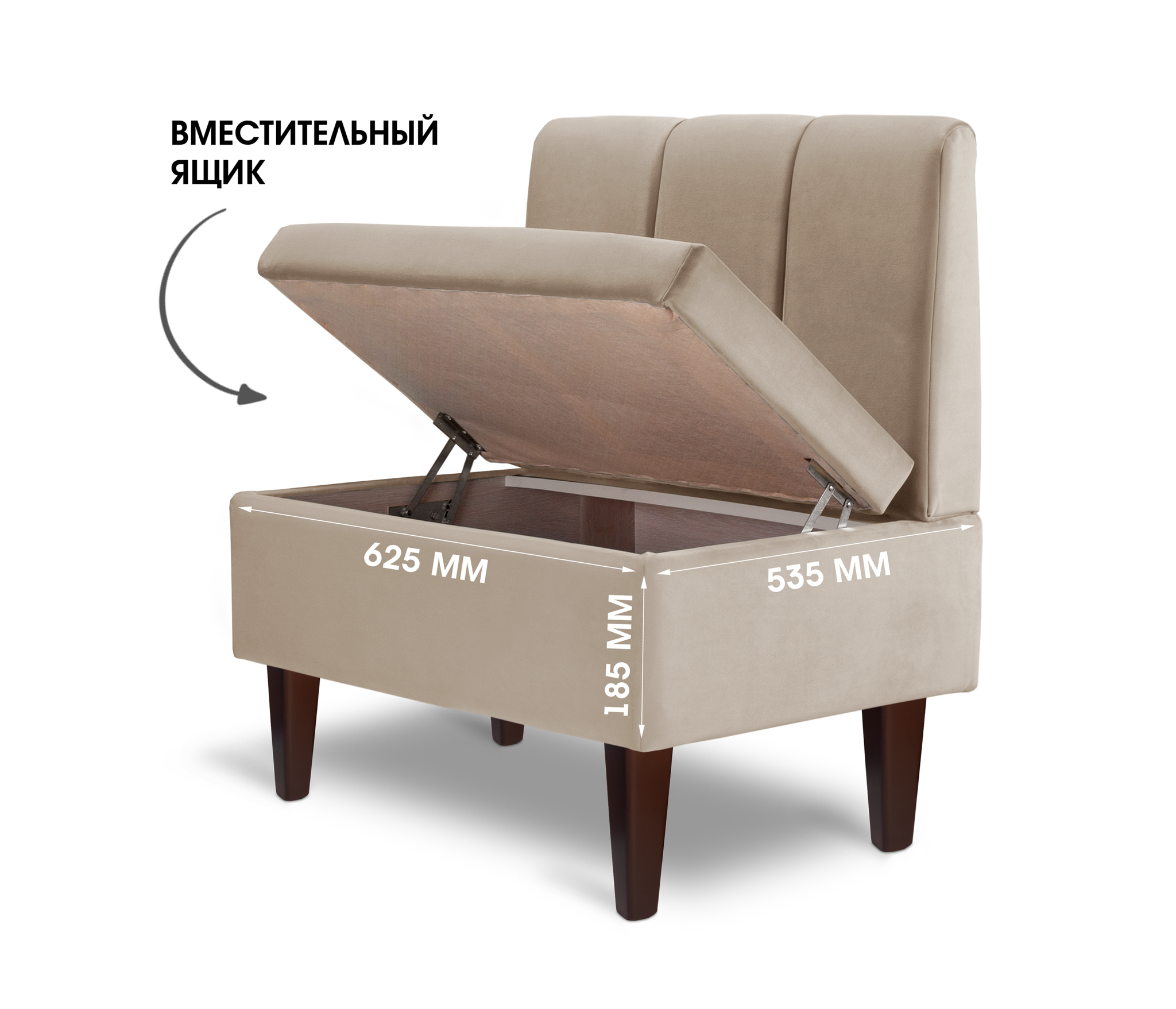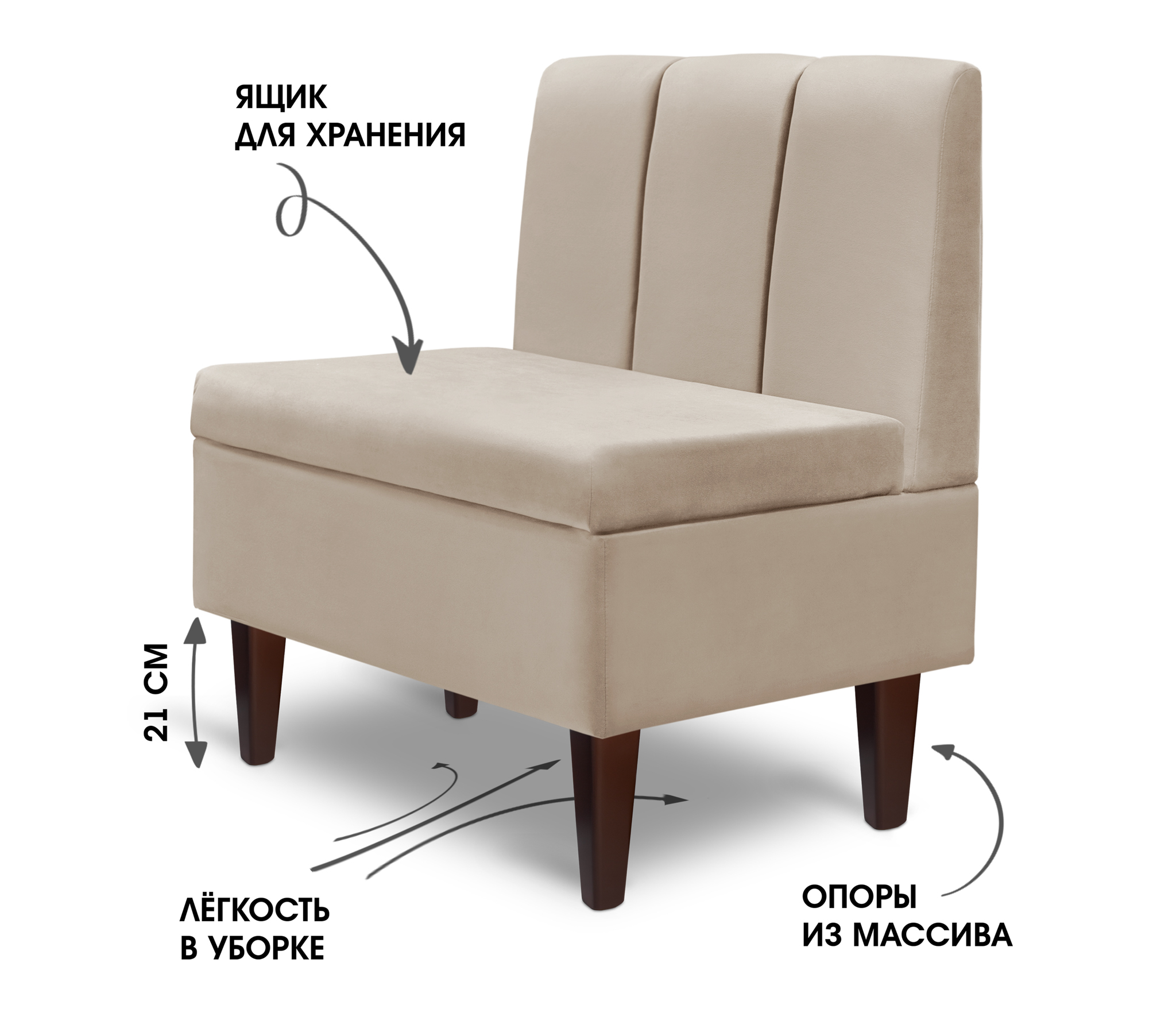 Диван прямой на ножках Лео 66, микровелюр (Кремовый) Код I0000319575
