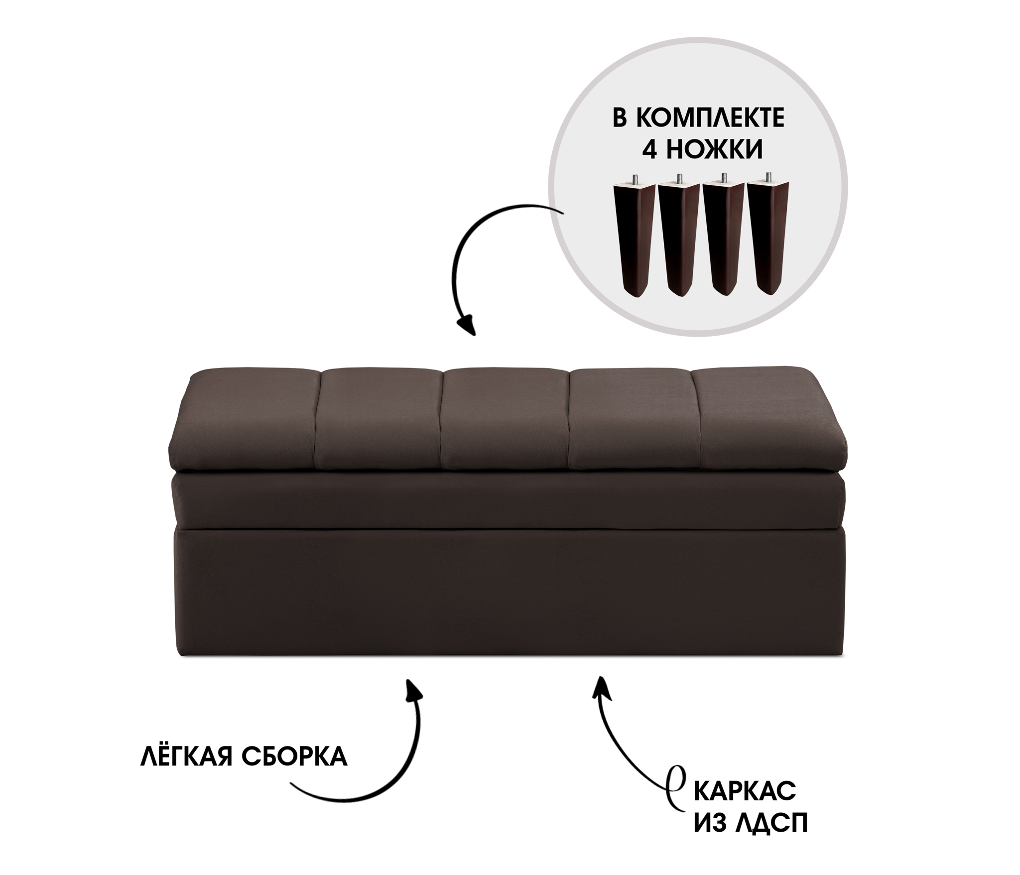Диван прямой на ножках Лео 110, микровелюр (Коричневый) Код I0000319581
